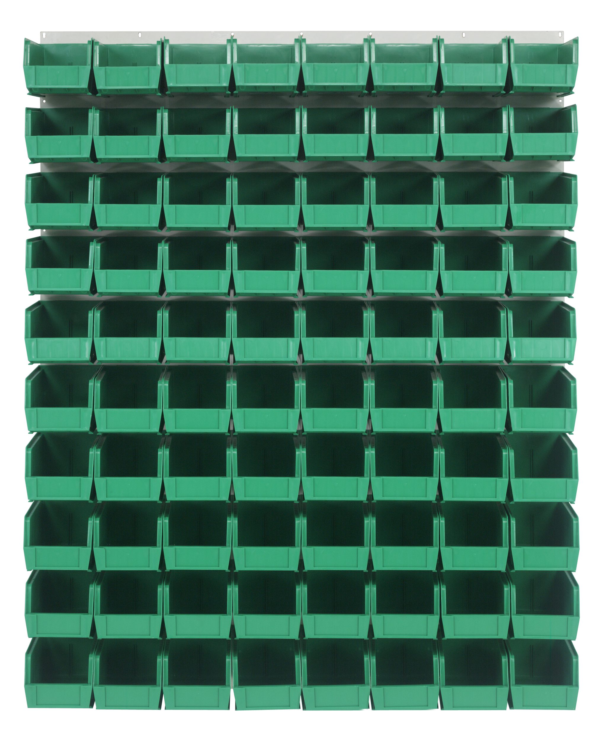 Louvered Panel, wall mounted, 48″L x 11″D x 61″H, includes: (80) QUS230, clear bins, heavy-duty 16 gauge cold rolled steel, oyster white enamel coated finish (mounting hardware not included)