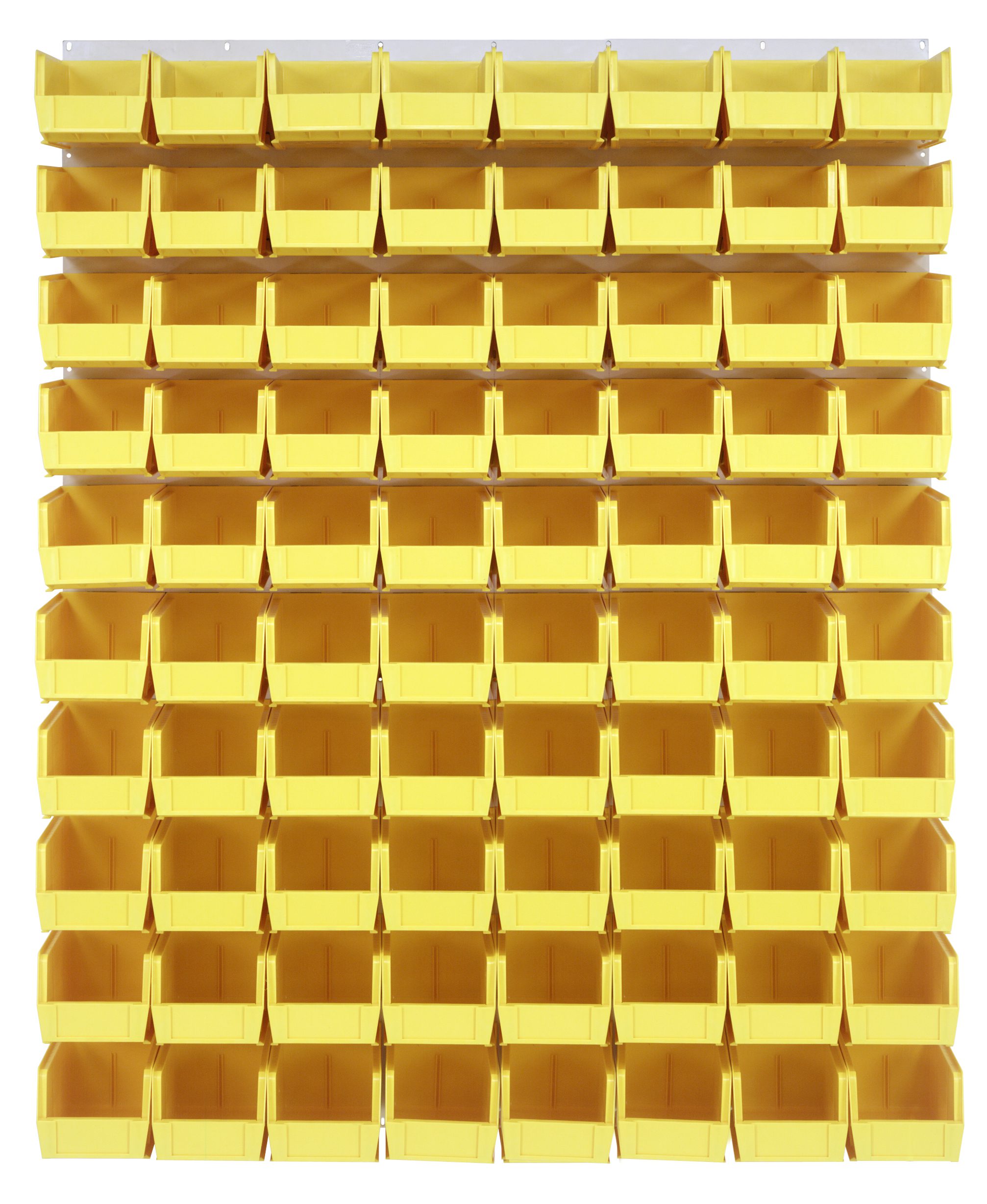 Quantum Louvered Panel, Wall Mounted, 48″L X 11″D X 61″H, Includes: (80) QUS230, Clear Bins, Heavy-Duty 16 Gauge Cold Rolled Steel, Oyster White Enamel Coated Finish (Mounting Hardware Not Included) – QM-QLP-4861HC-230-80YL
