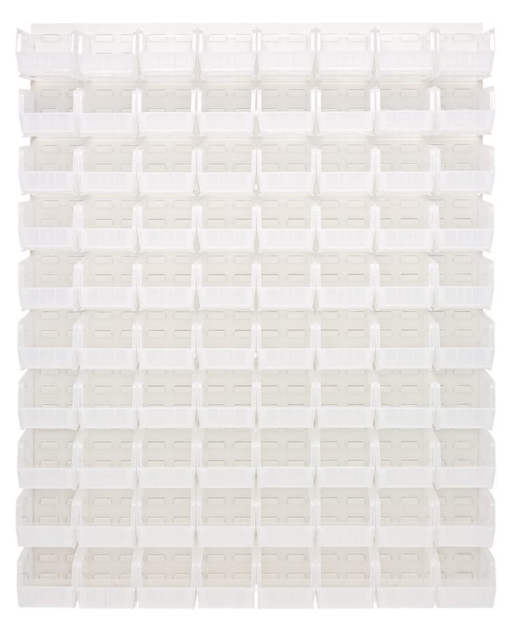 Quantum Louvered Panel, Wall Mounted, 48″L X 11″D X 61″H, Includes: (80) QUS230, Clear Bins, Heavy-Duty 16 Gauge Cold Rolled Steel, Oyster White Enamel Coated Finish (Mounting Hardware Not Included) – QM-QLP-4861HC-230-80CL