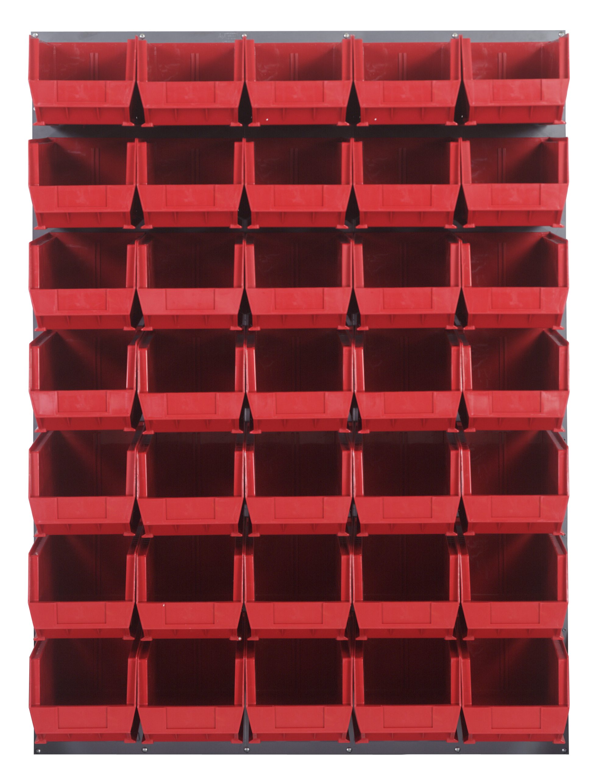 Quantum Louvered Panel, Wall Mounted, 48″L X 15″D X 61″H, Includes: (35) QUS240, Clear Bins, Heavy-Duty 16 Gauge Cold Rolled Steel, Gray Enamel Coated Finish (Mounting Hardware Not Included) – QM-QLP-4861-240-35RD
