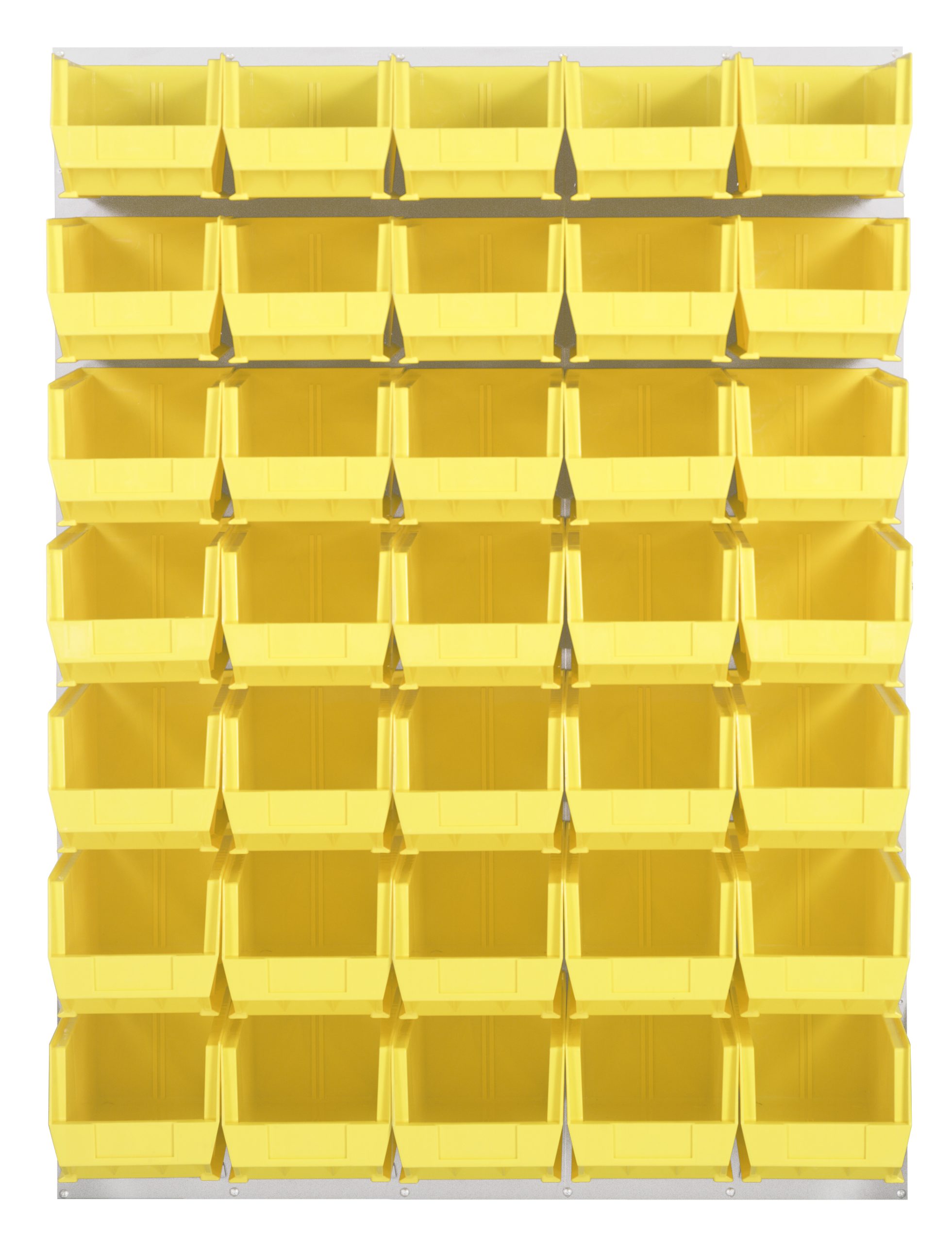 Quantum Louvered Panel, Wall Mounted, 48″L X 15″D X 61″H, Includes: (35) QUS240, Clear Bins, Heavy-Duty 16 Gauge Cold Rolled Steel, Oyster White Enamel Coated Finish (Mounting Hardware Not Included) – QM-QLP-4861HC-240-35YL