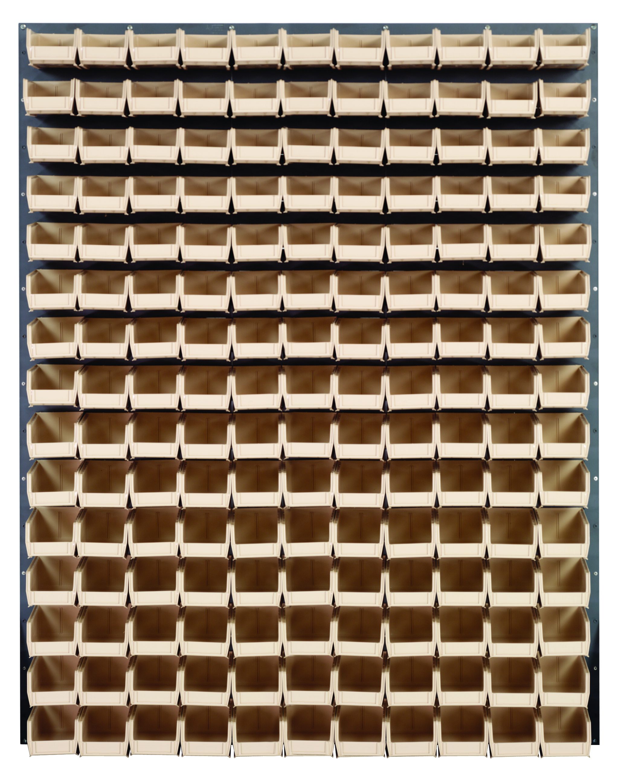 Louvered Panel, wall mounted, 48″L x 8″D x 61″H, includes: (165) QUS220, clear bins, heavy-duty 16 gauge cold rolled steel, gray enamel coated finish (mounting hardware not included)