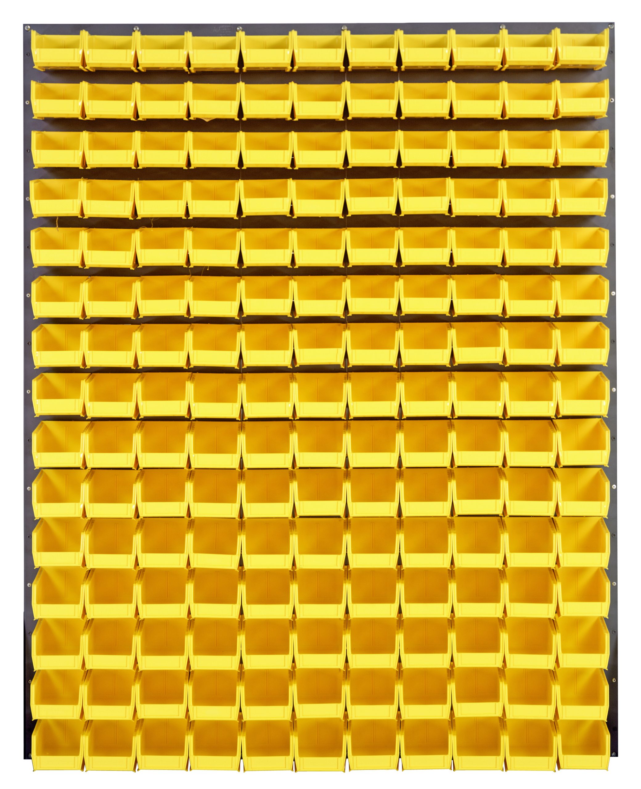 Quantum Louvered Panel, Wall Mounted, 48″L X 8″D X 61″H, Includes: (165) QUS220, Clear Bins, Heavy-Duty 16 Gauge Cold Rolled Steel, Gray Enamel Coated Finish (Mounting Hardware Not Included) – QM-QLP-4861-220-165YL