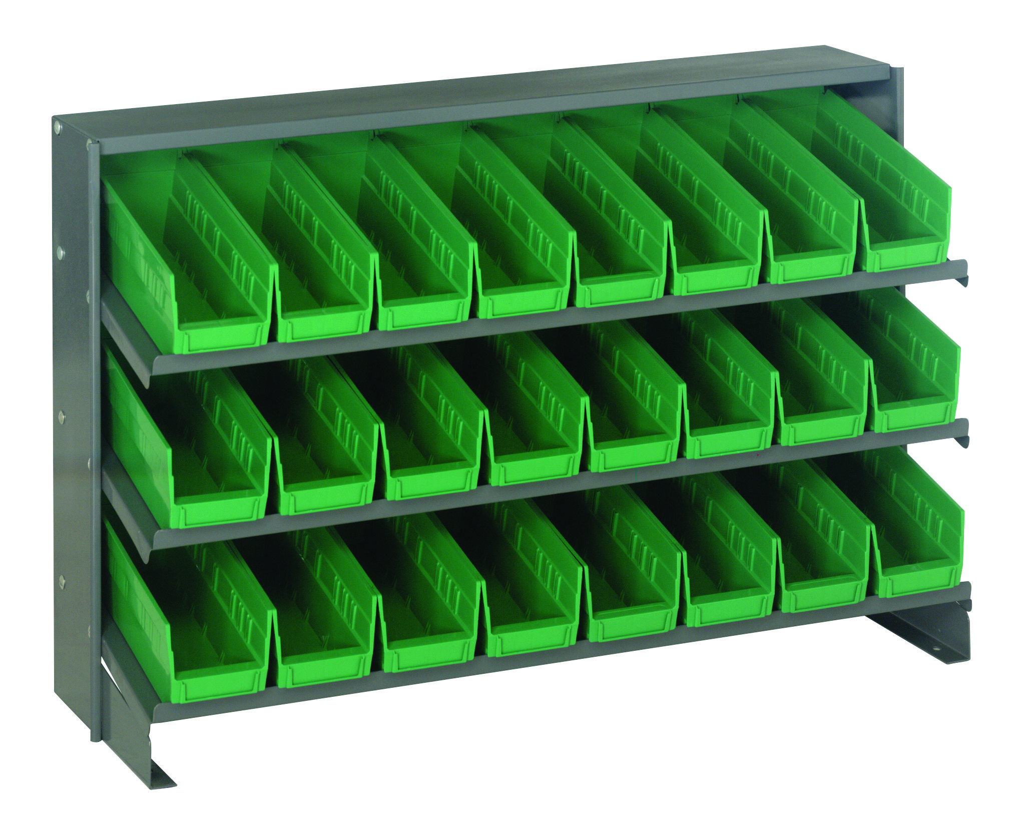 Quantum Pick Rack, Slopped, Bench Style, 12-1/2″L X 36″W X 23″H, 250 Lbs. Capacity, (3) Shelves Configuration, Includes: (24) Qsb101 Green Bins