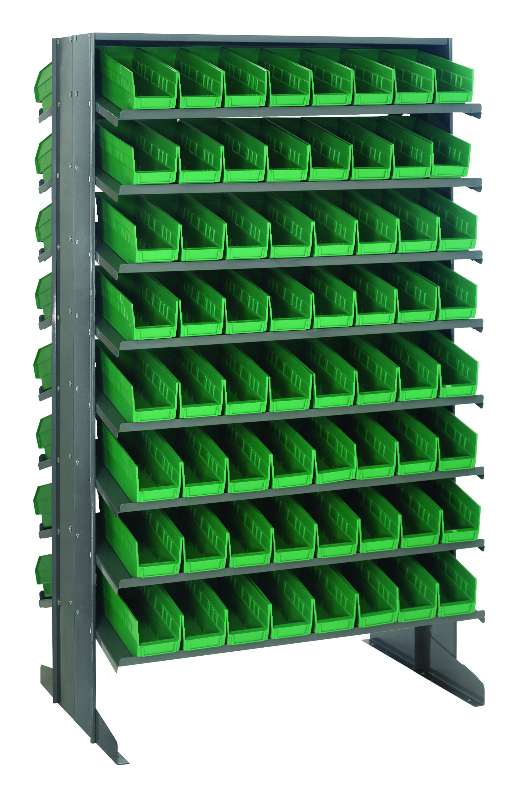 Pick Rack, slopped, double sided, 24″L x 36″W x 60″H, 800 lbs. capacity, (16) shelves configuration, includes: (128) QSB101 green bins