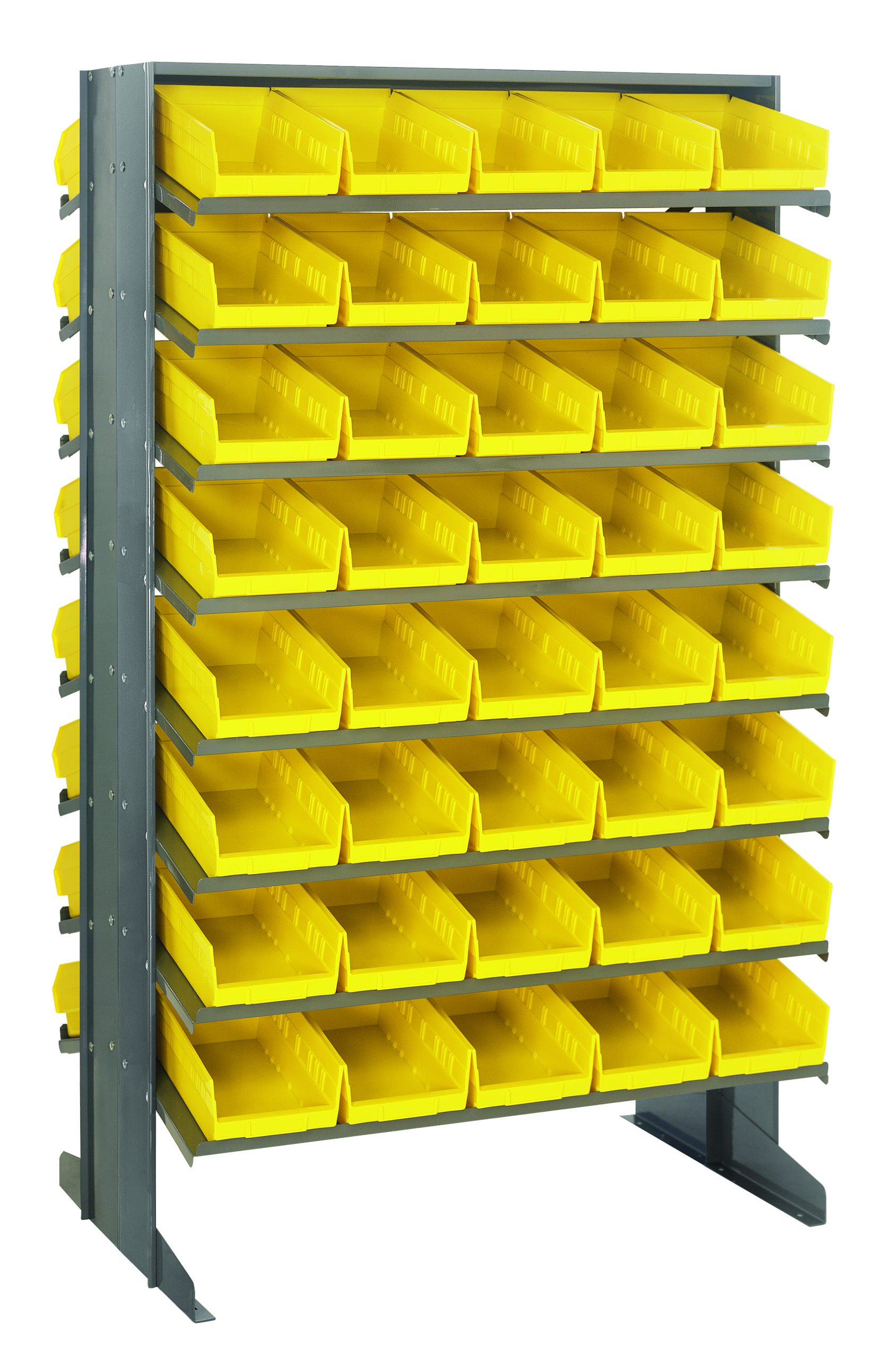 Pick Rack, slopped, double sided, 24″L x 36″W x 60″H, 800 lbs. capacity, (16) shelves configuration, includes: (80) QSB102 yellow bins