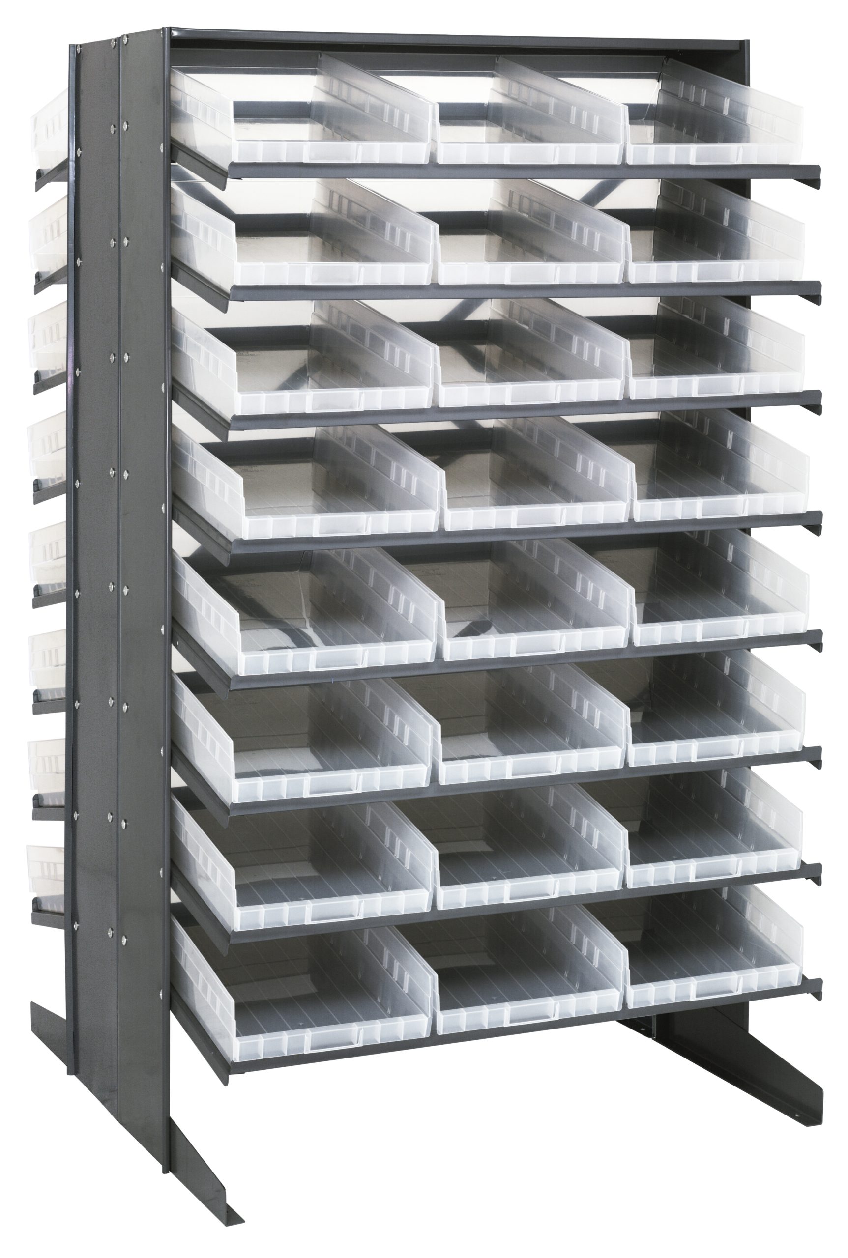 Quantum Pick Rack, Slopped, Double Sided, 36″L X 36″W X 60″H, 800 Lbs. Capacity, (16) Shelves Configuration, Includes: (48) Qsb110 Clear Bins