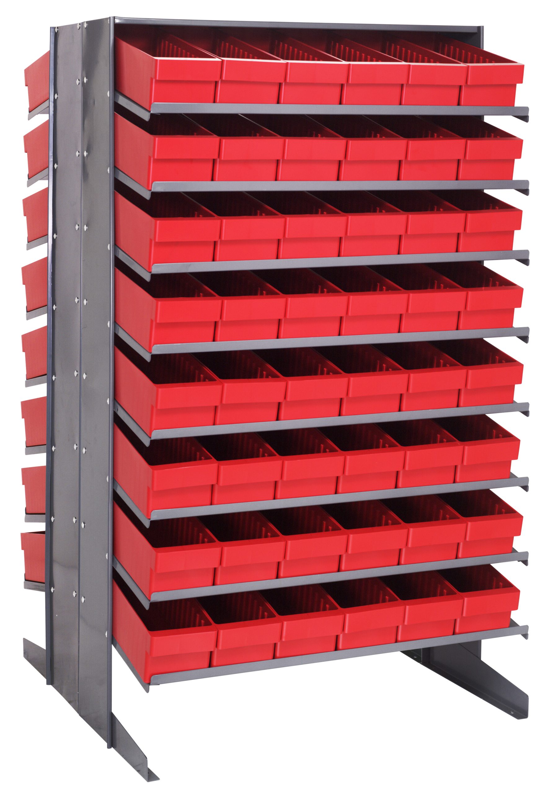 Quantum Pick Rack, Slopped, Double Sided, 36″L X 36″W X 60″H, 800 Lbs. Capacity, (16) Shelves Configuration, Includes: (96) QED602 Red Bins