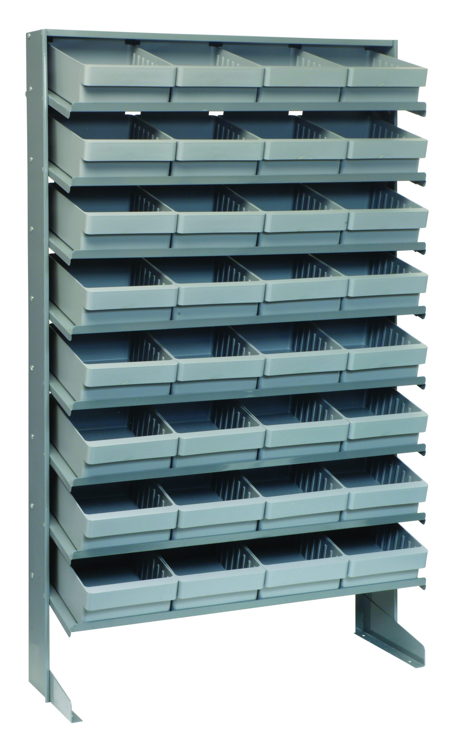 Quantum Pick Rack, Slopped, Single Sided, 12″D X 36″W X 63-1/2″H, 400 Lbs. Capacity, Includes: (8) Shelves And (32) QED701 Gray Bins, Galvanized Steel