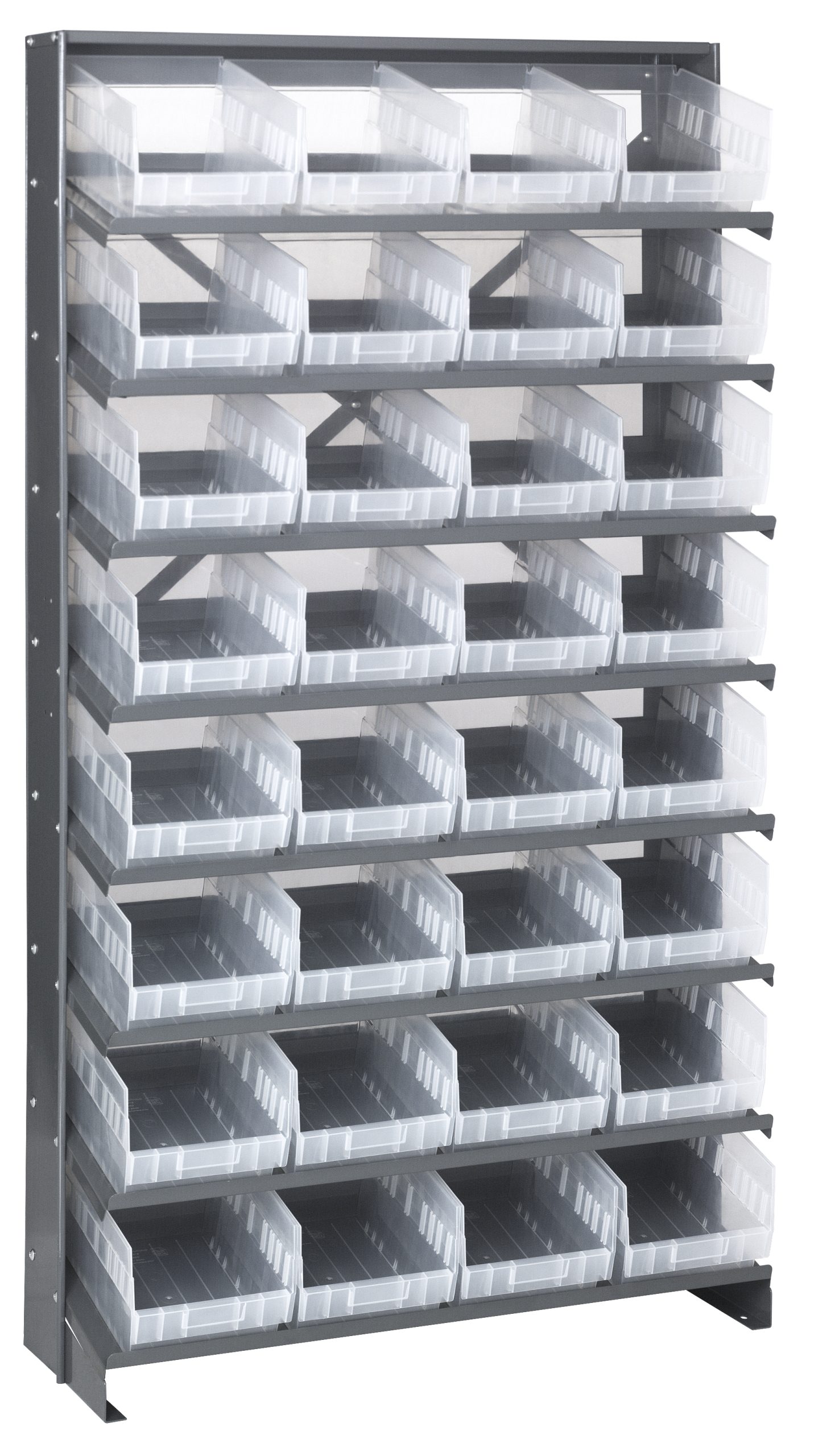 Quantum Pick Rack, Slopped, Single Sided, 12″D X 36″W X 63-1/2″H, 400 Lbs. Capacity, Includes: (8) Shelves And (32) Qsb207 Clear Bins, Galvanized Steel