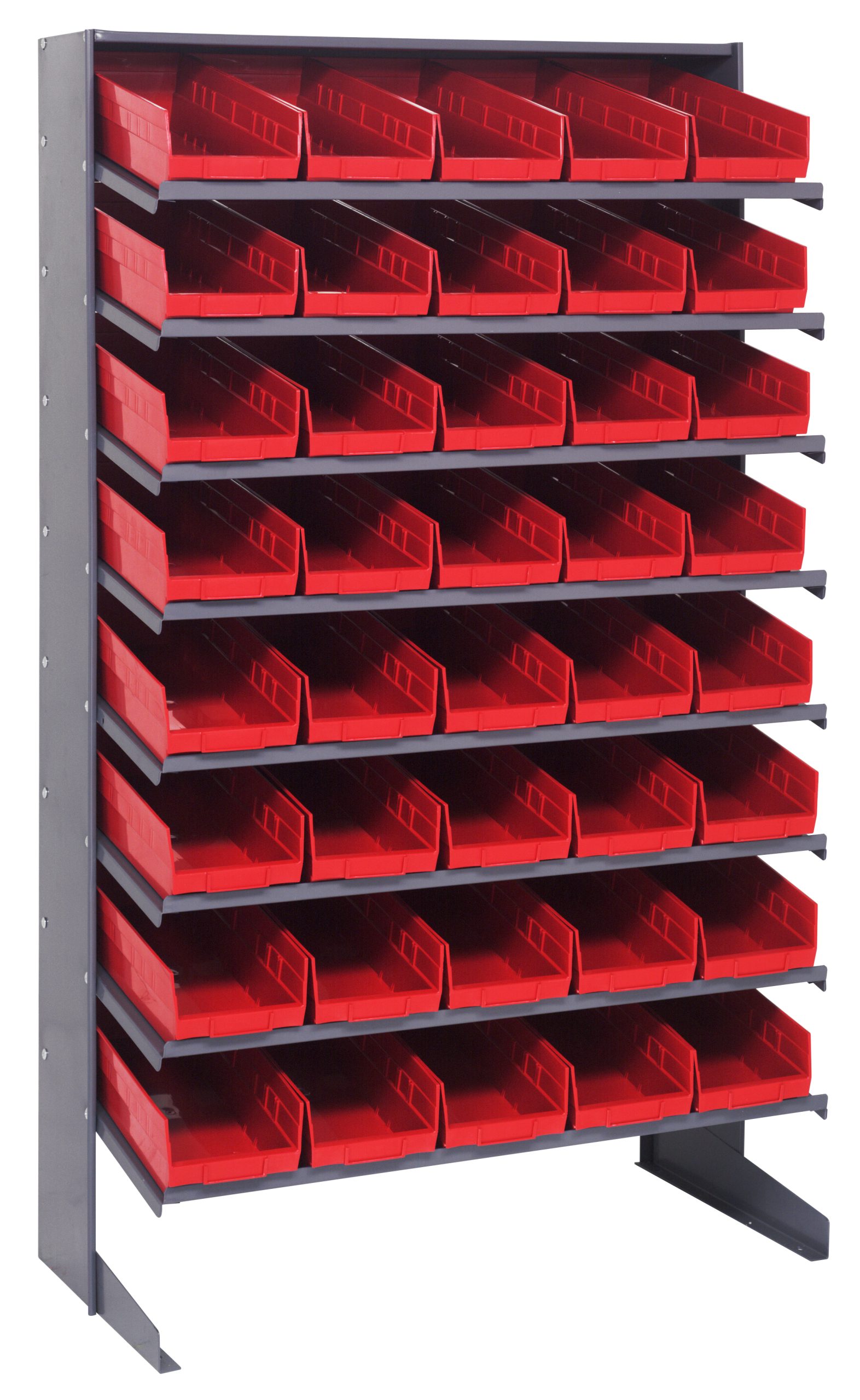 Quantum Pick Rack, Slopped, Single Sided, 18″D X 36″W X 60″H, 400 Lbs. Capacity, Includes: (8) Shelves And (40) Qsb104 Red Bins, Galvanized Steel