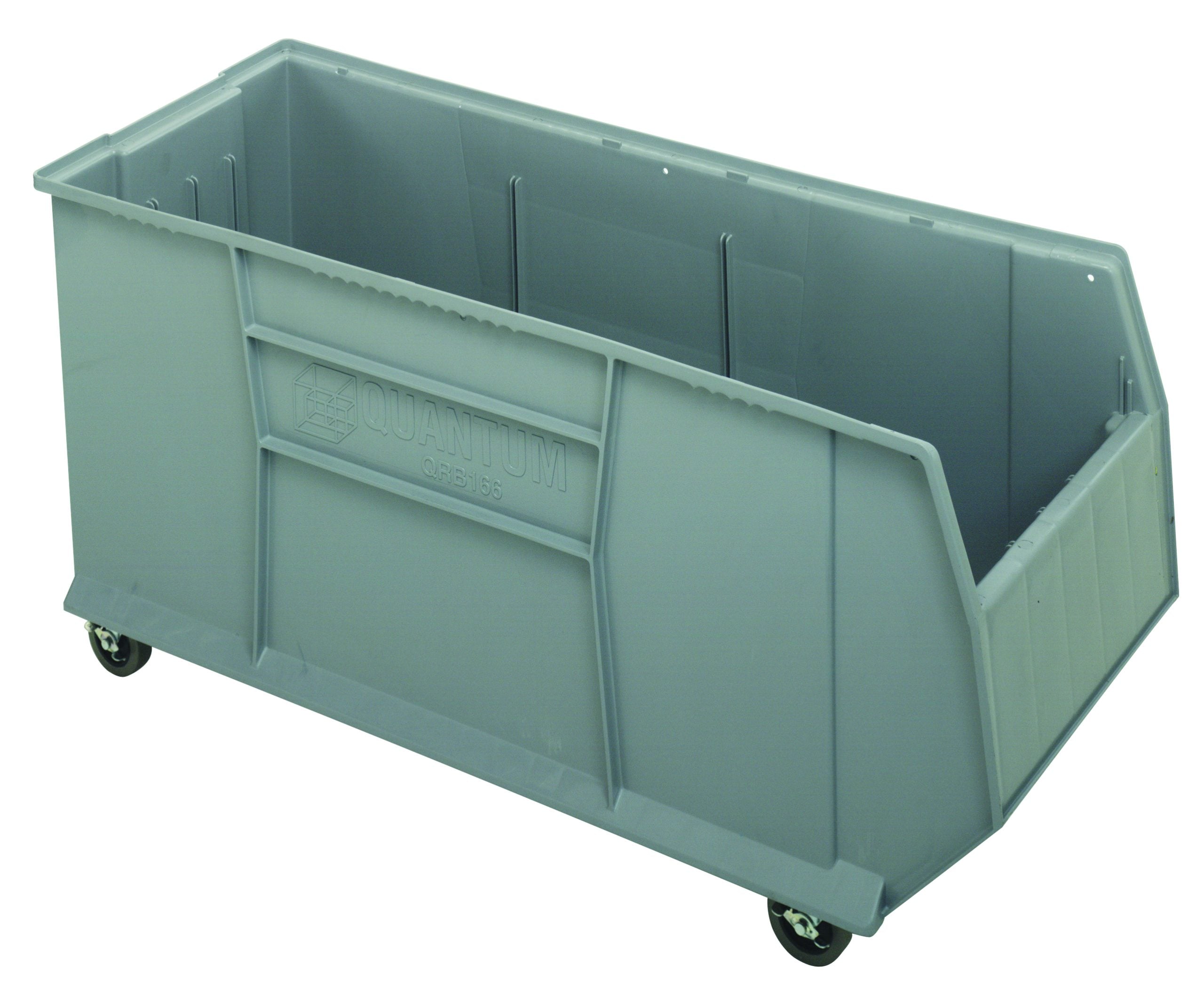 Quantum Rackbin 42″ Container, Mobile, 47-7/8″L X 16-1/2″W X 20-1/2″H, 180 Lbs. Capacity, Includes (8) 1/4″ Drill Hole Pattern On Bottom Of Bin For Easy Hole Insertion For Drainage And Air Circulation If Needed And Casters, Made Of High Density Polypropylene, Gray, Made In USA