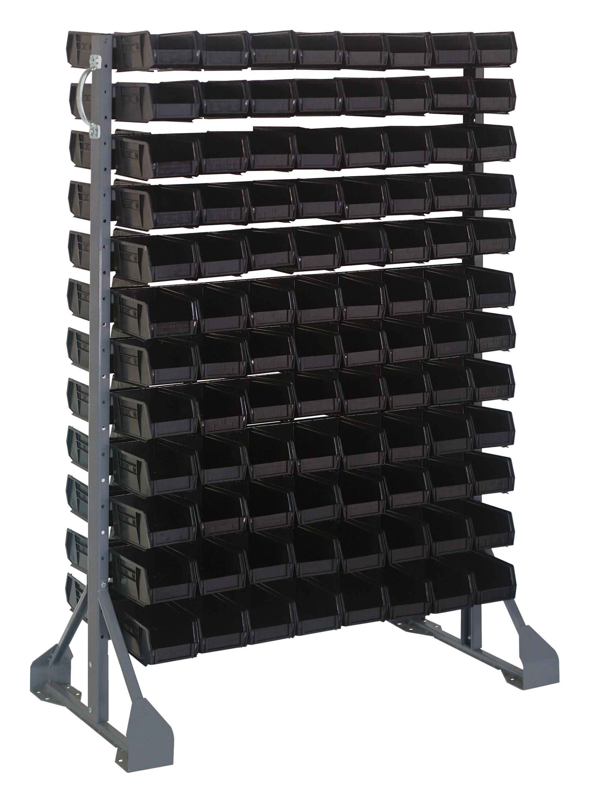 Rail Rack, double sided, 36″L x 20″W x 53″H, 1500 lbs load capacity, includes: (12) rails and (192) QUS220 black bins, galvanized steel