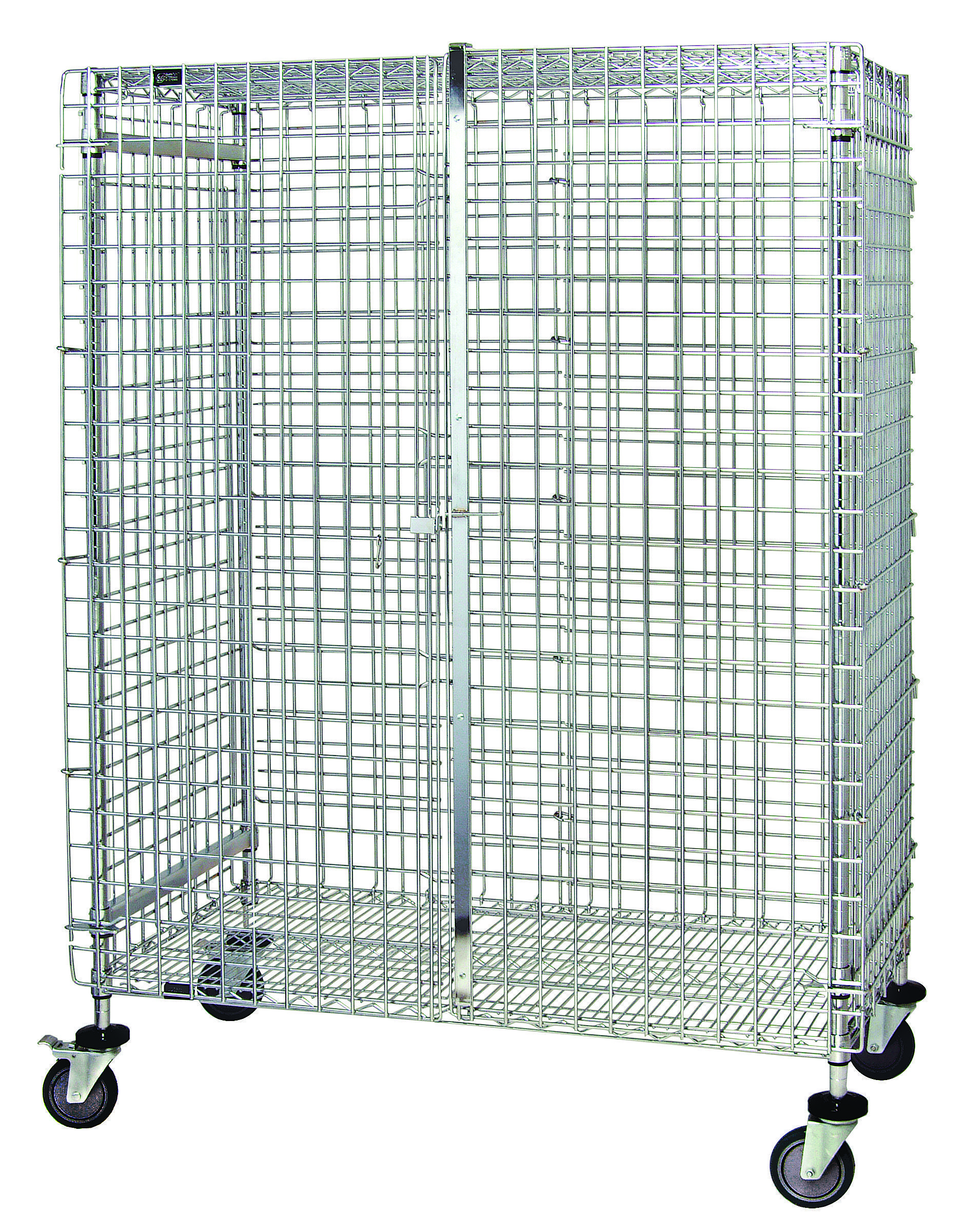 -57%Security Unit, mobile, 36″W x 24″D x 69″H, includes: (1) top shelf, (1) bottom shelf, (1) security panel set (includes back and sides), (1) pair of security panel doors, and (4) posts, donut bumpers, (4) 5″ poly stem casters (2 with brakes), chrome plated finish, NSF