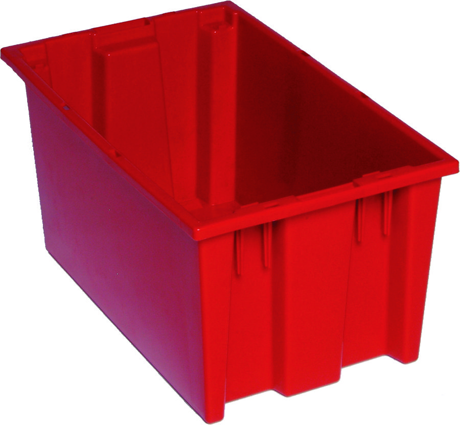 Stack and Nest Tote, 18″W x 11″D x 9″H, heavy duty, 0.76 cu. ft. capacity, red polypropylene, Made in USA (priced per each, 6 each per carton)