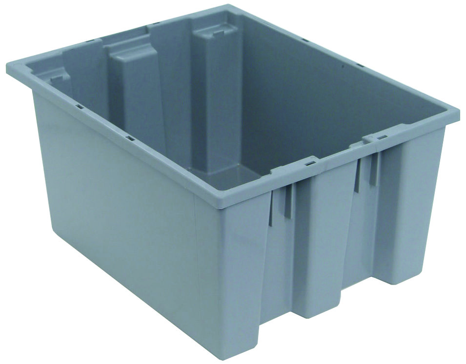 Stack and Nest Tote, 19-1/2″W x 15-1/2″D x 10″H, heavy duty, 1.20 cu. ft. capacity, gray polypropylene, Made in USA (priced per each, 6 each per carton)