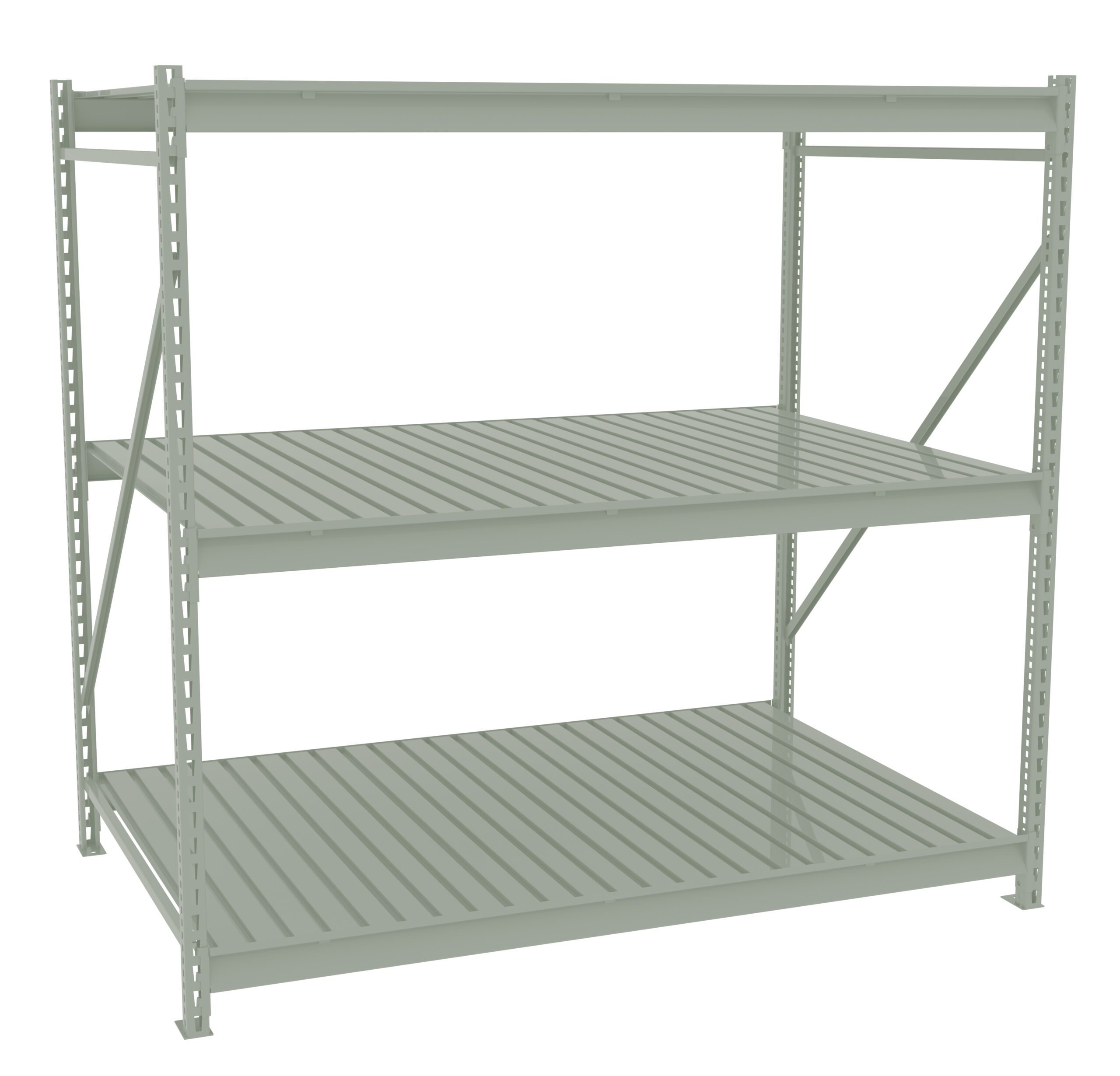 Bulk storage units go together fast and easy. Beams simply slide into place. Superior beams lock into the uprights on 2” centers. Specially formed beams add strength at the front and rear of shelf edges. All corrugated decking comes in 12” wide sections.