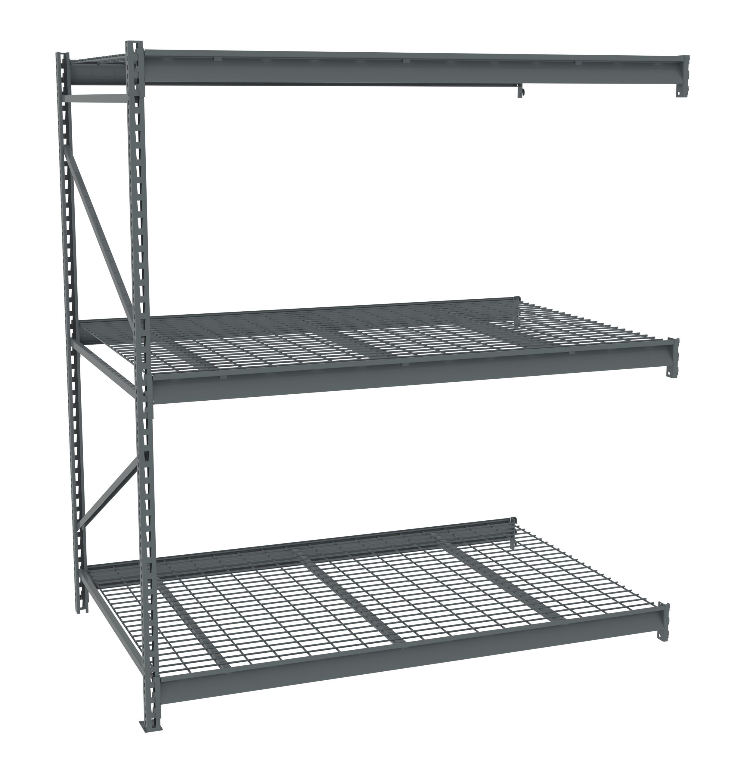 Bulk storage units go together fast and easy. Beams simply slide into place. Superior beams lock into the uprights on 2” centers. Specially formed beams add strength at the front and rear of shelf edges. Wire decking uses 5 gauge wire and consists of a 2″ x 4″ mesh pattern.