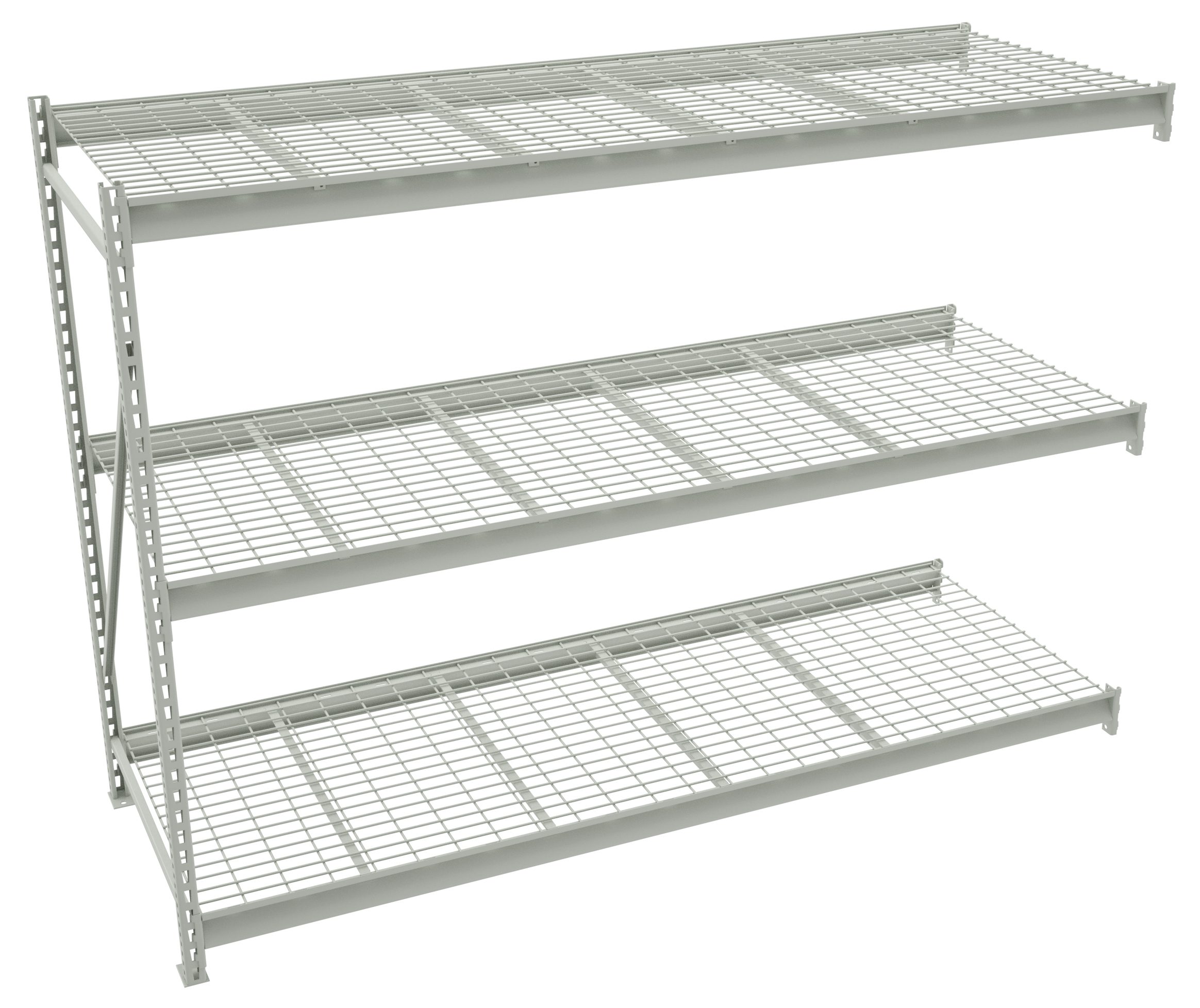 Bulk storage units go together fast and easy. Beams simply slide into place. Superior beams lock into the uprights on 2” centers. Specially formed beams add strength at the front and rear of shelf edges. Wire decking uses 5 gauge wire and consists of a 2″ x 4″ mesh pattern.