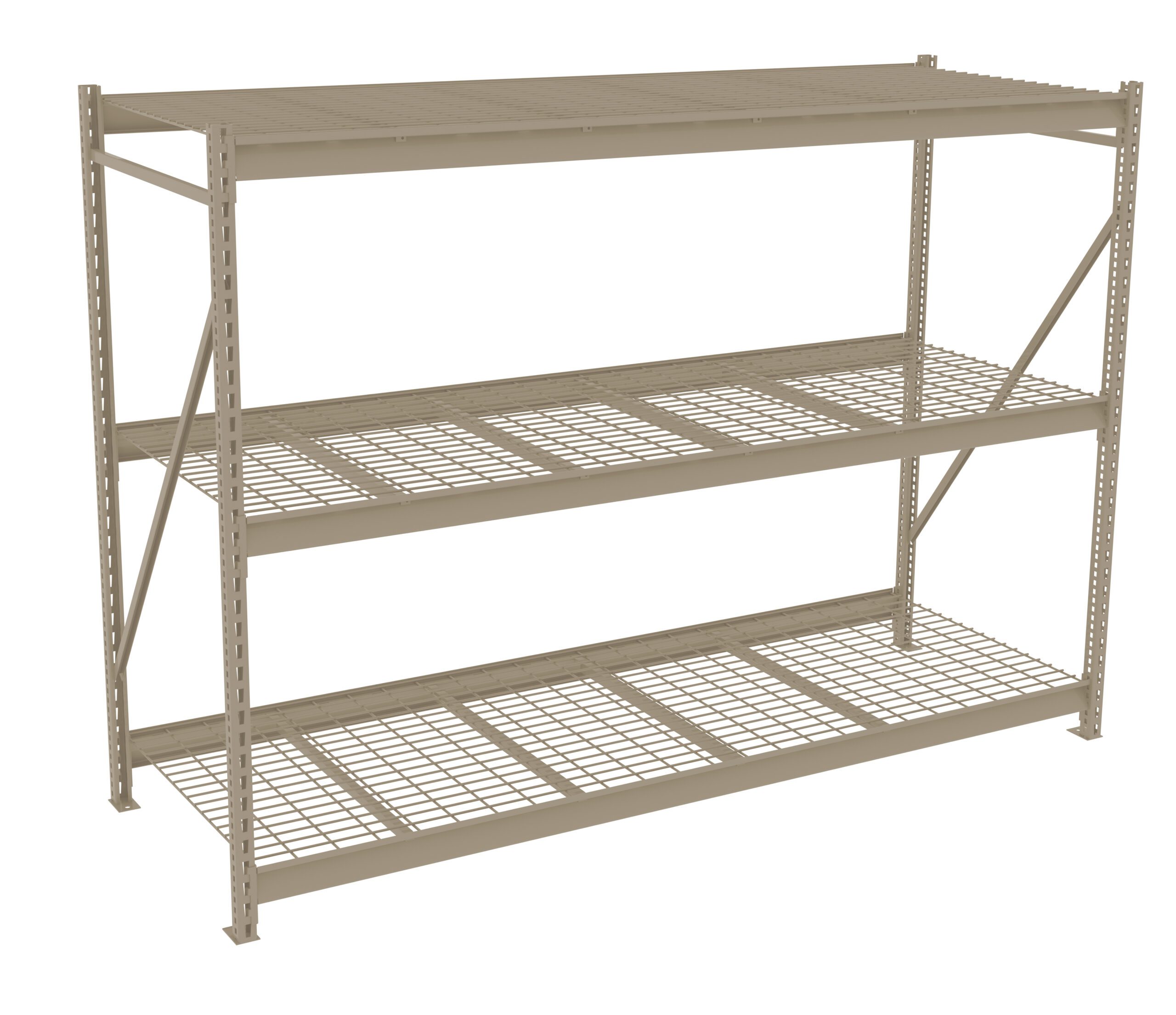 Bulk storage units go together fast and easy. Beams simply slide into place. Superior beams lock into the uprights on 2” centers. Specially formed beams add strength at the front and rear of shelf edges. Wire decking uses 5 gauge wire and consists of a 2″ x 4″ mesh pattern.
