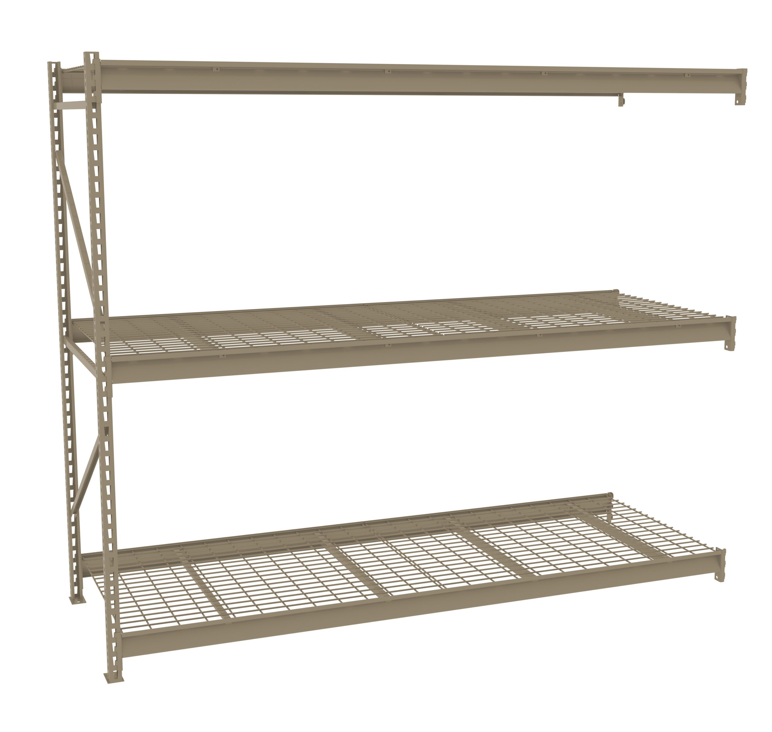 Bulk storage units go together fast and easy. Beams simply slide into place. Superior beams lock into the uprights on 2” centers. Specially formed beams add strength at the front and rear of shelf edges. Wire decking uses 5 gauge wire and consists of a 2″ x 4″ mesh pattern.