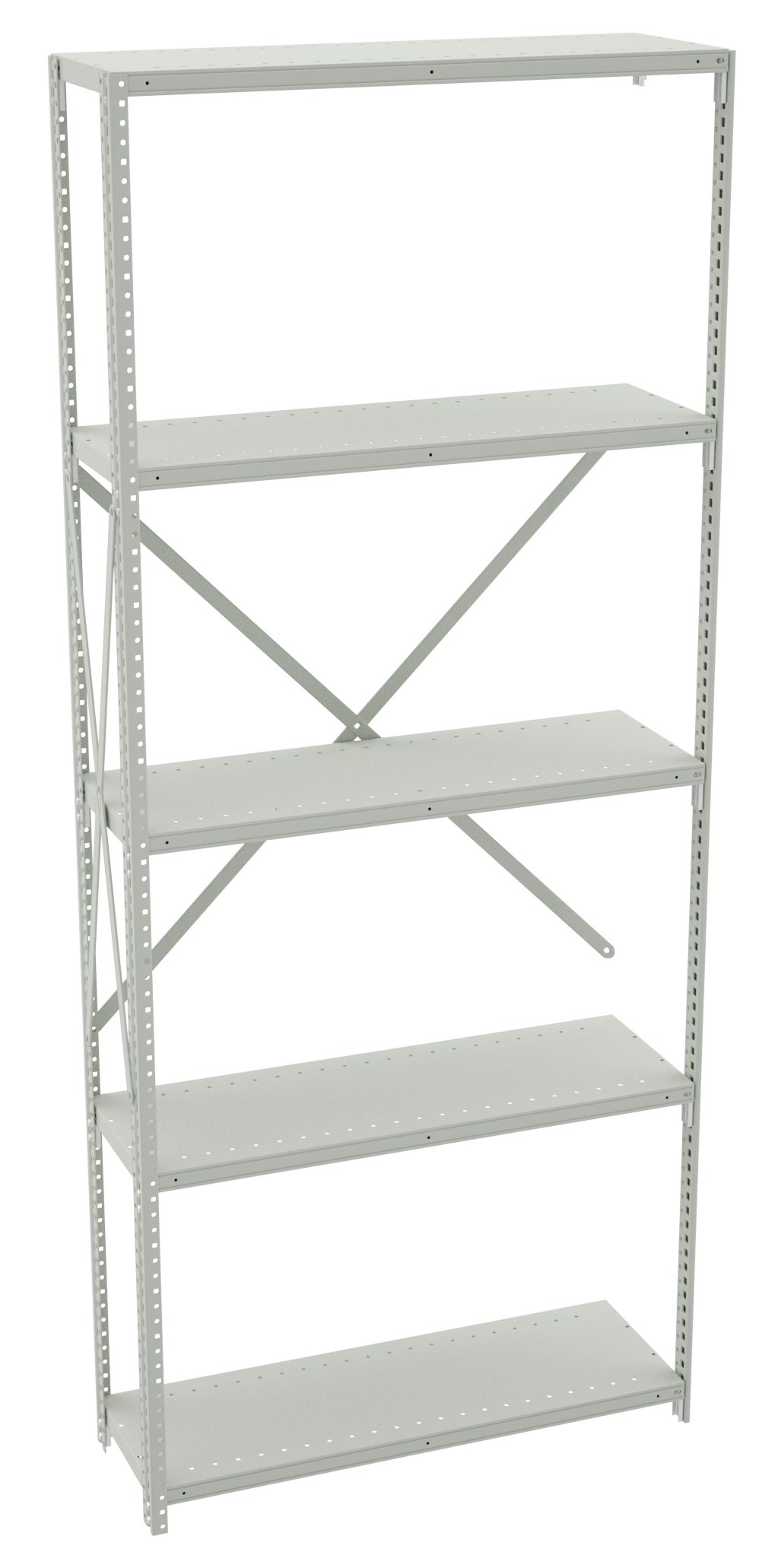 Open style units provide easy access to items. Shelf corners are fully lapped and welded for extra strength. Shelves can be adjusted quickly and easily in 1” increments to make maximum use of vertical space. 13-Gauge compression clips make adding shelves simple. Specially designed square locater slots allow for easy adjustability.