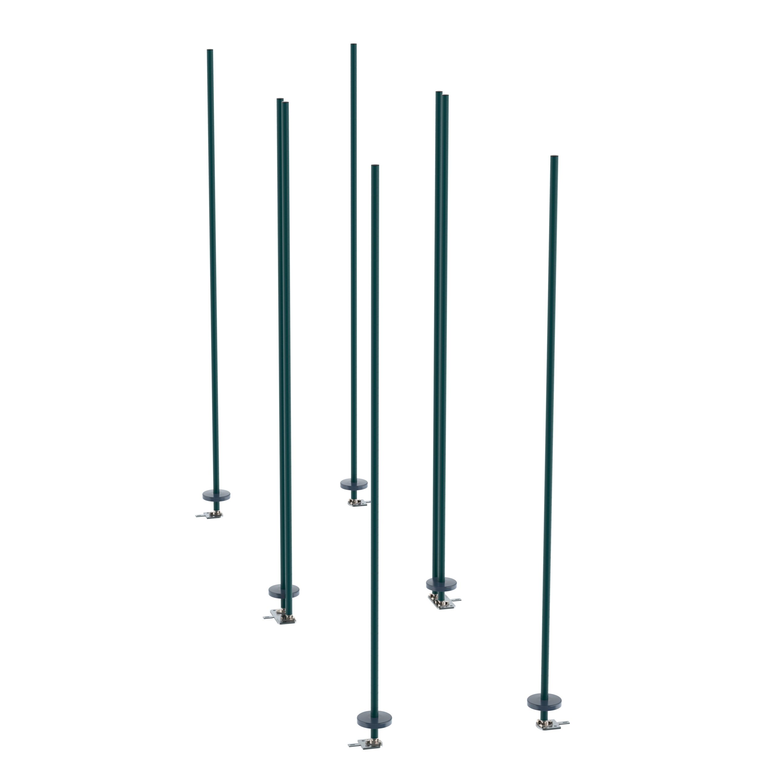 - Includes: (8) 74″ high posts, stainless steel foot plates, and hardware