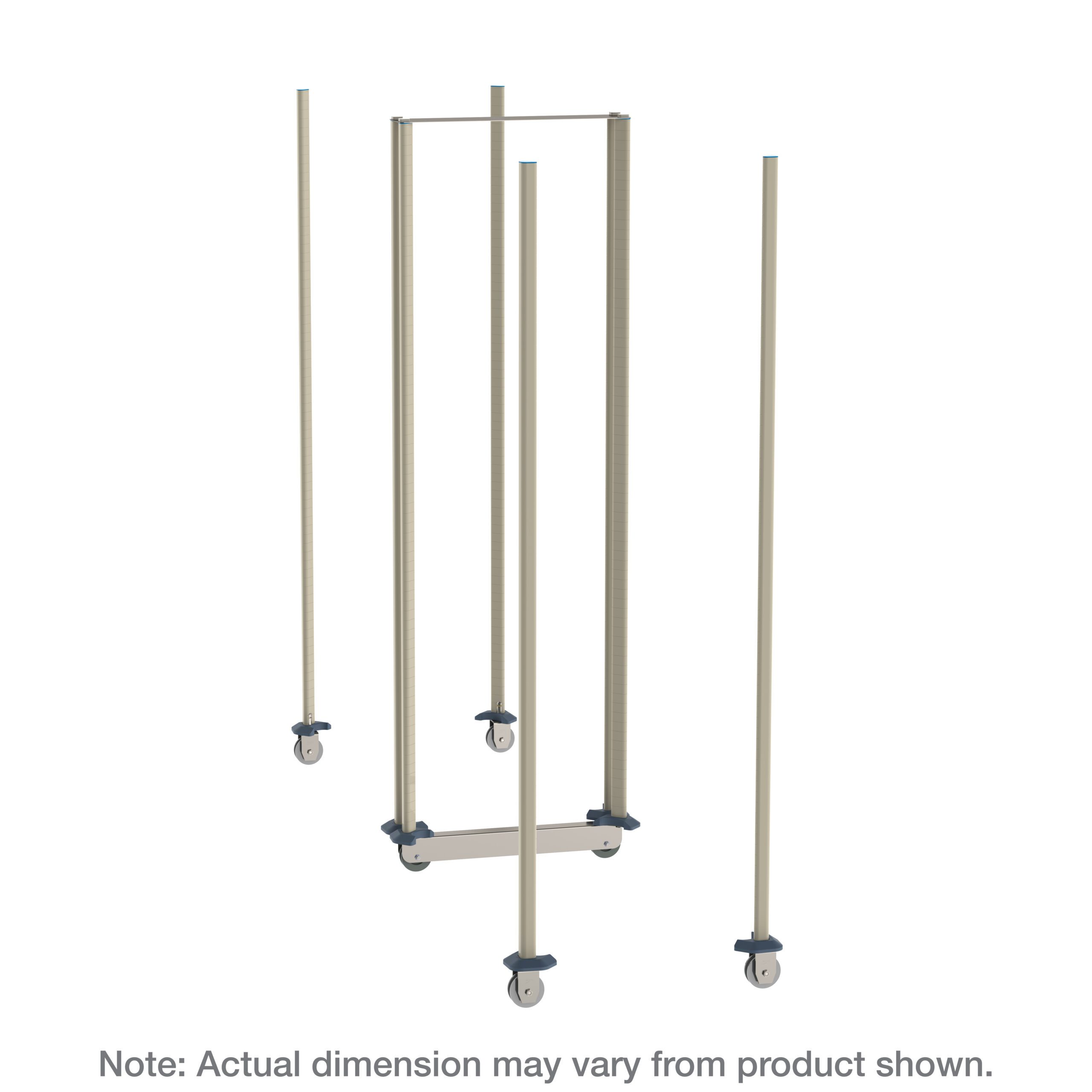 - Complete Kit: Includes (8) 74″ (1880mm) high posts, (4) V-groove casters, (1) center channel caster assembly, doughnut bumpers, and tie bar brackets.