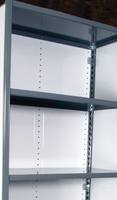 V Grip components — VG Back Panel Assembly 36 x 96 V-Grip Shelving Components – Build your own shelving system – 18 Gauge Design Benefits and Features include: industry leader in structural integrity; exclusive v-grip compression design, durable enamel paint finish, available in open and closed(Back and sides) configurations. Regardless of color selected for shelving, all side and back panels are reflective white unless otherwise noted by requestVG Back Panel Assembly 36 x 96