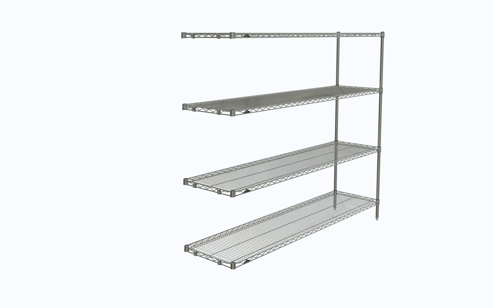 The Metro AN376C Super Erecta 4-Shelf Industrial Wire Shelving Add-On Unit provides a robust and efficient storage solution for a variety of environments. This chrome shelving unit is designed for easy assembly and expandability, making it a perfect addition to any existing Super Erecta shelving system. See product image above.