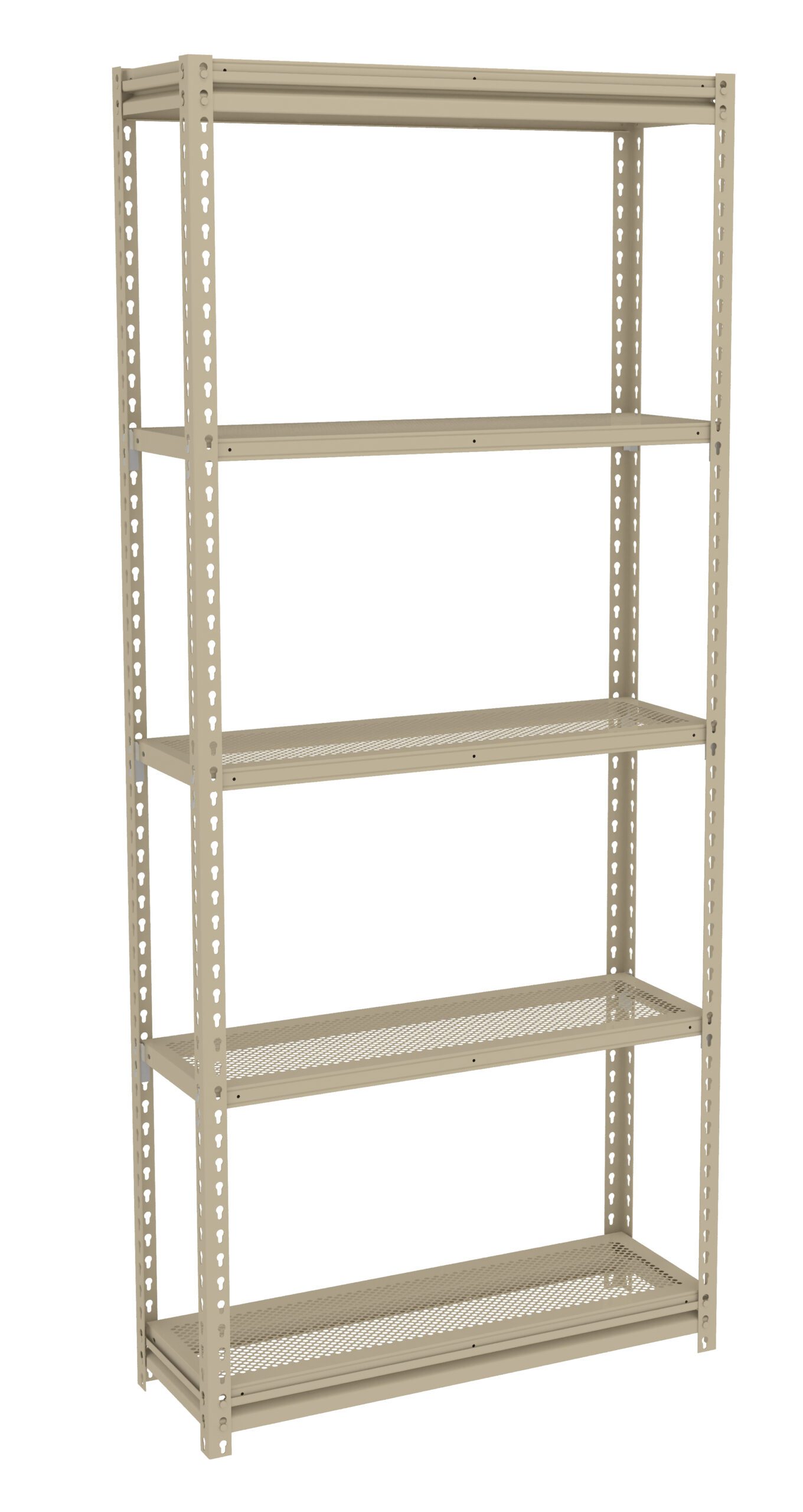 Tennsco 36″W x 12″D Perforated Steel Shelving Starter Unit, Sand