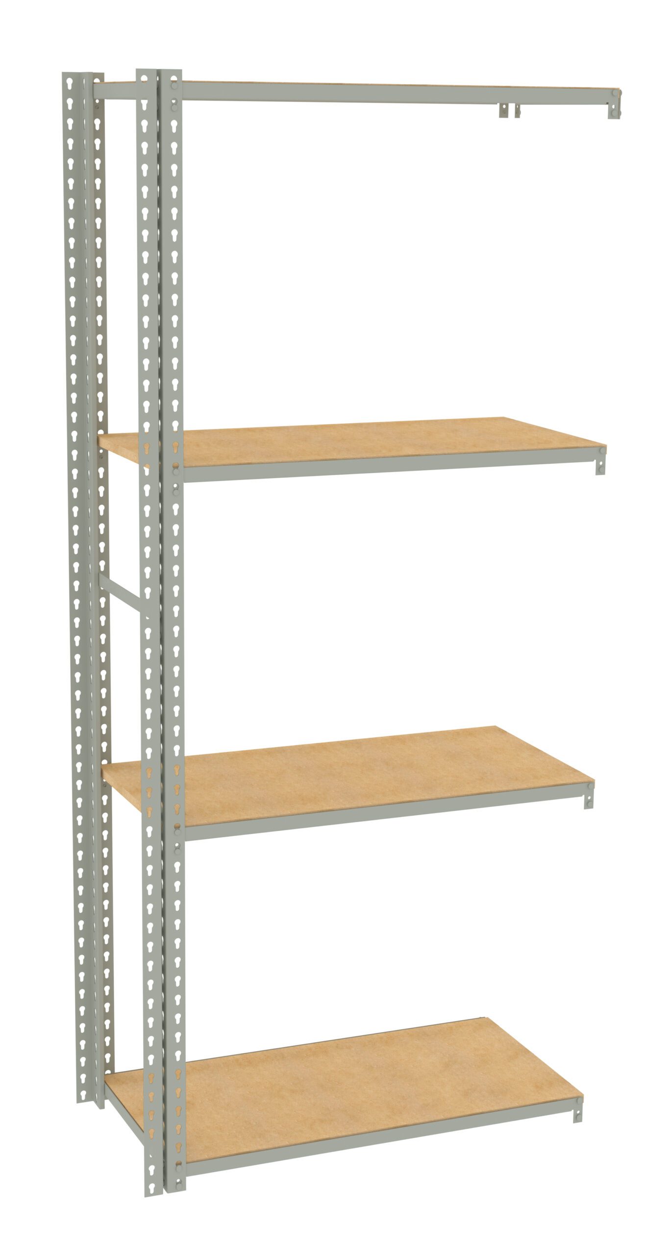Specially designed 1 1/8” high shelf supports provide greater openings, allowing for extra vertical space. Tapered keyhole slots and snap-in rivet design makes installation easy. No side or back braces allows access to stored items from all sides. Shelves adjust in 1 1/2” increments. Locater slot makes positioning shelves easy. Center supports reinforce deep shelves.