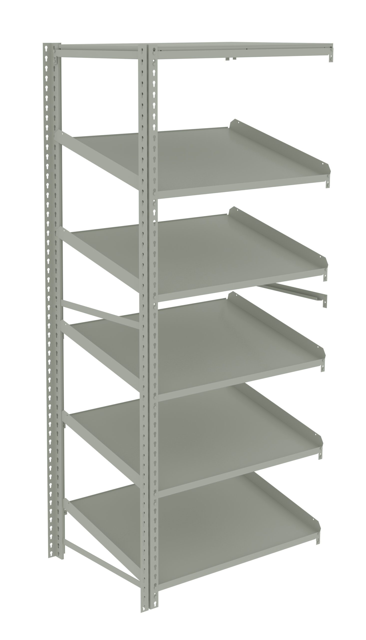 Tennsco 36″W x 24″D Sloped Shelving Adder Unit, Light Grey