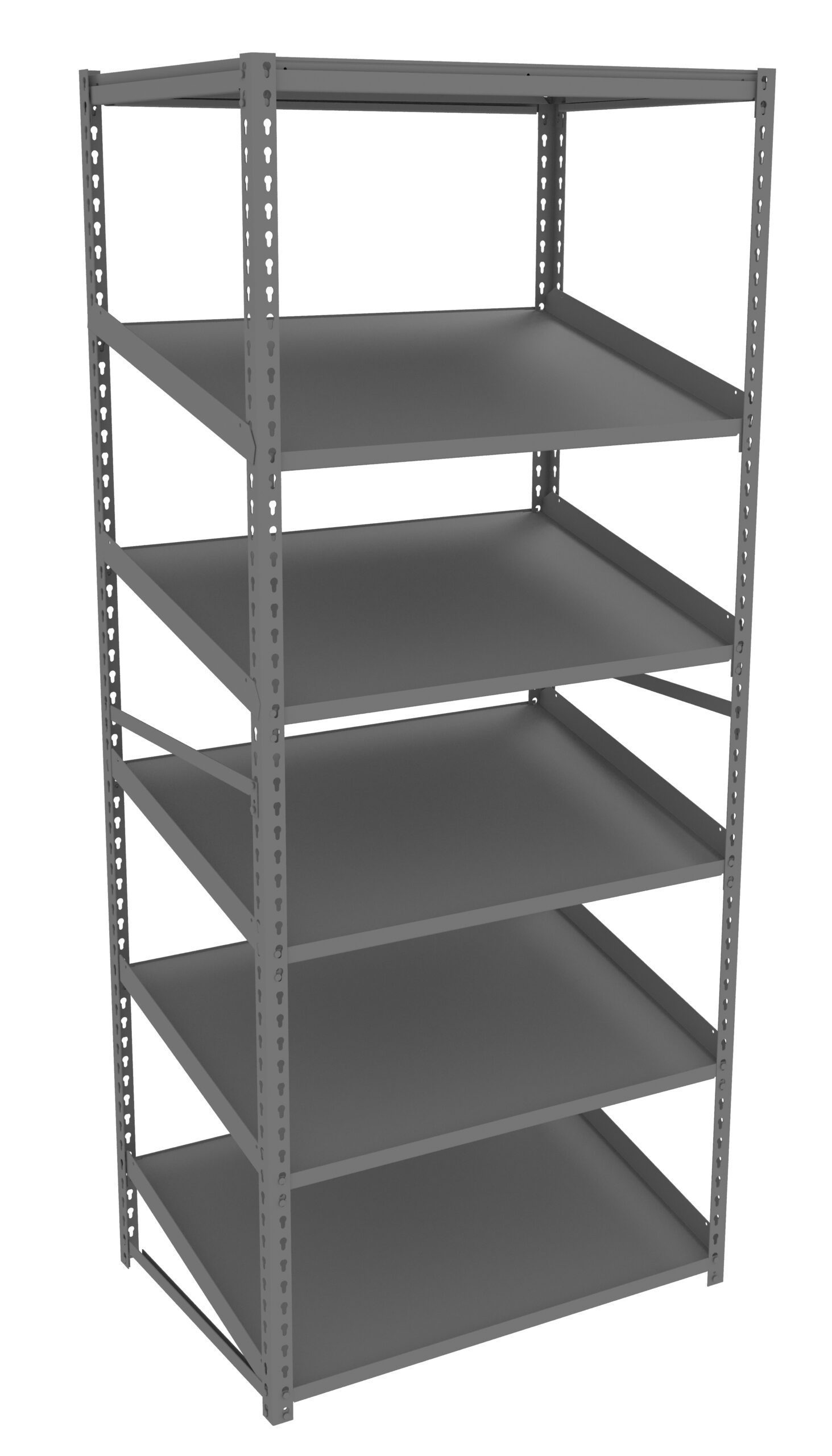 Tennsco 36″W x 24″D Sloped Shelving Starter Unit, Medium Grey