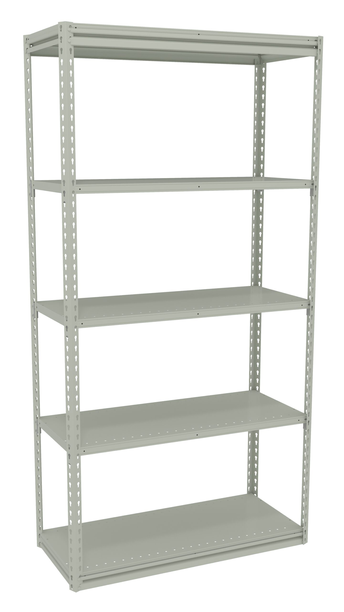 Shelf corners are fully lapped and welded for extra strength. No side or back braces allows access to stored items from all sides. Shelves adjust in 1 1/2” increments. Tapered keyhole slots and snap-in rivet design makes installation easy. Flush louvers provide ventilation.