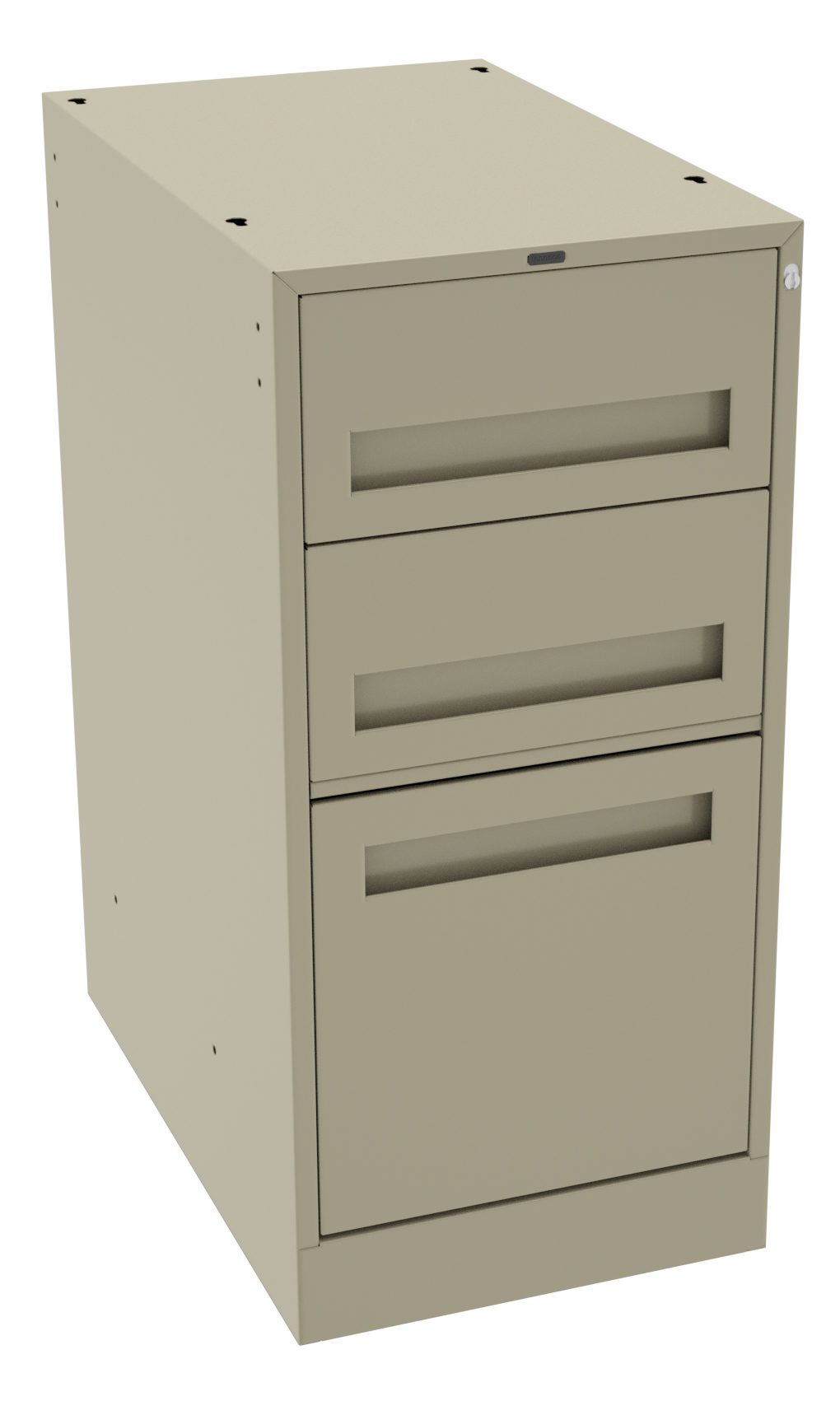 3-drawer modular cabinet comes standard with keylock which locks all drawers simultaneously. Drawer load capacity is 70 lbs.