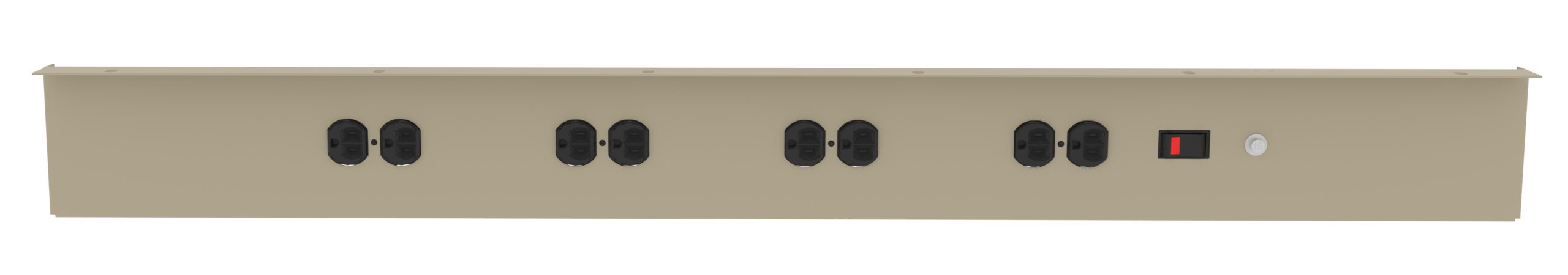 Provides mounting plate for four duplex outlets on panel leg workbenches. Wiring kit included and installed.