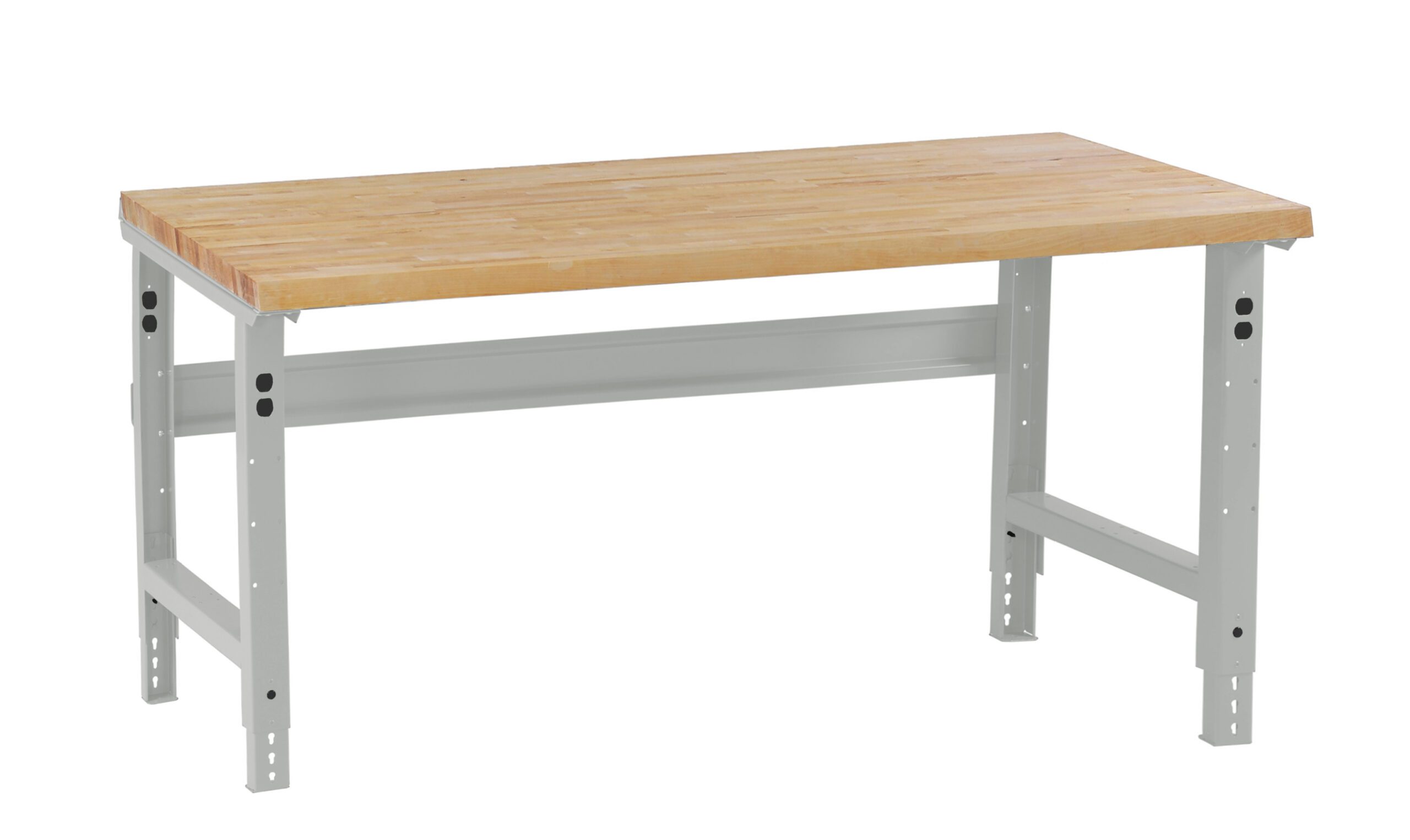 Tennsco 60″W x 30″D Adjustable Leg Workbench With Butcher Block Top, Light Grey
