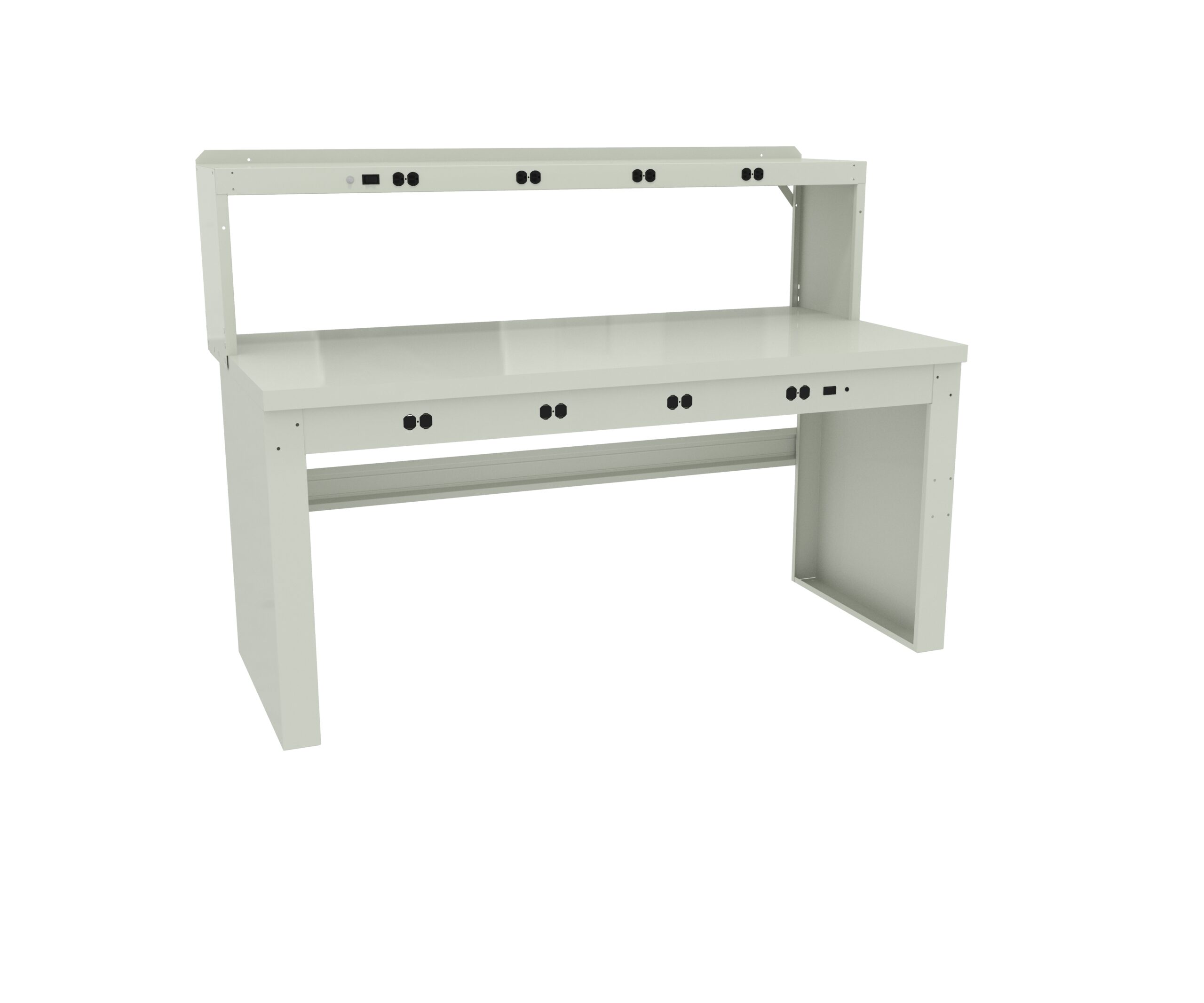 Tennsco 72″W x 36″D Electronic Workbench With Butcher Block Top, Stringer, Outlet Panel and Electronic Riser, Light Grey