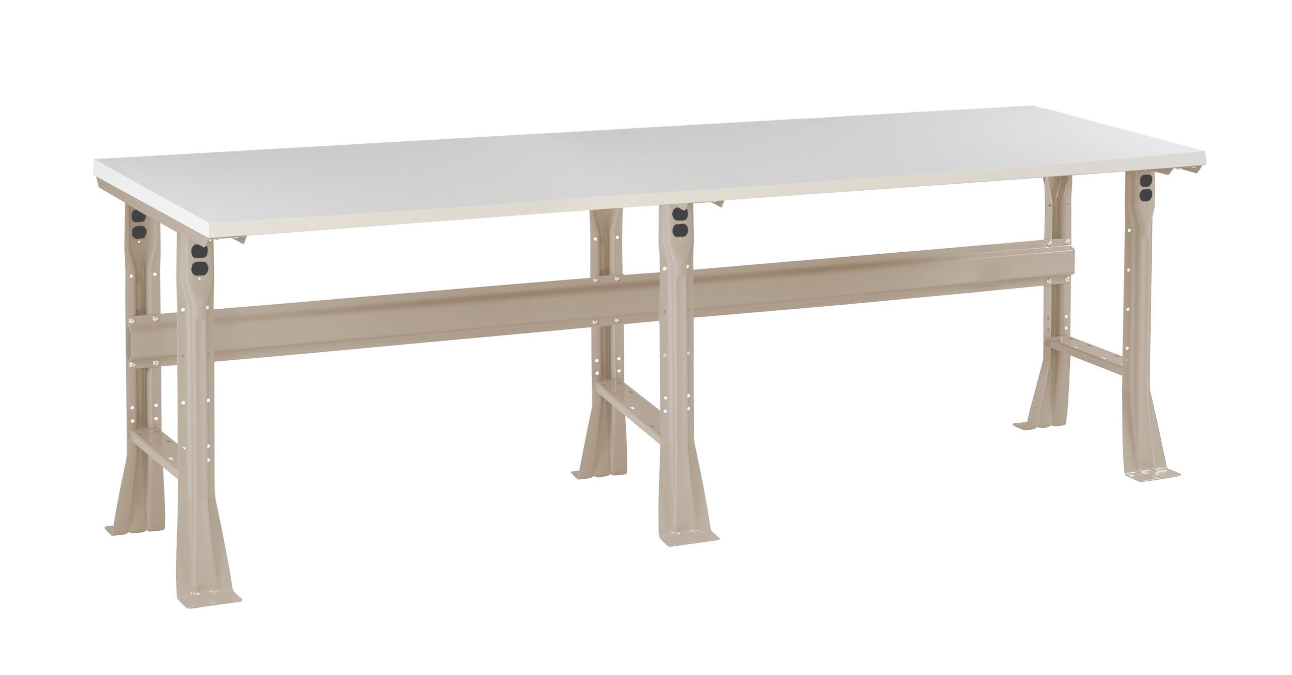 Tennsco 96″W x 30″D Flared Leg Workbench With Plastic Top, Sand