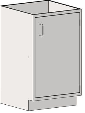 Base unit, standing height, right-hand hinged door, with wire style pull, 22”D x 18”W x 35”H, stainless steel construction with adjustable intermediate shelf & removable back