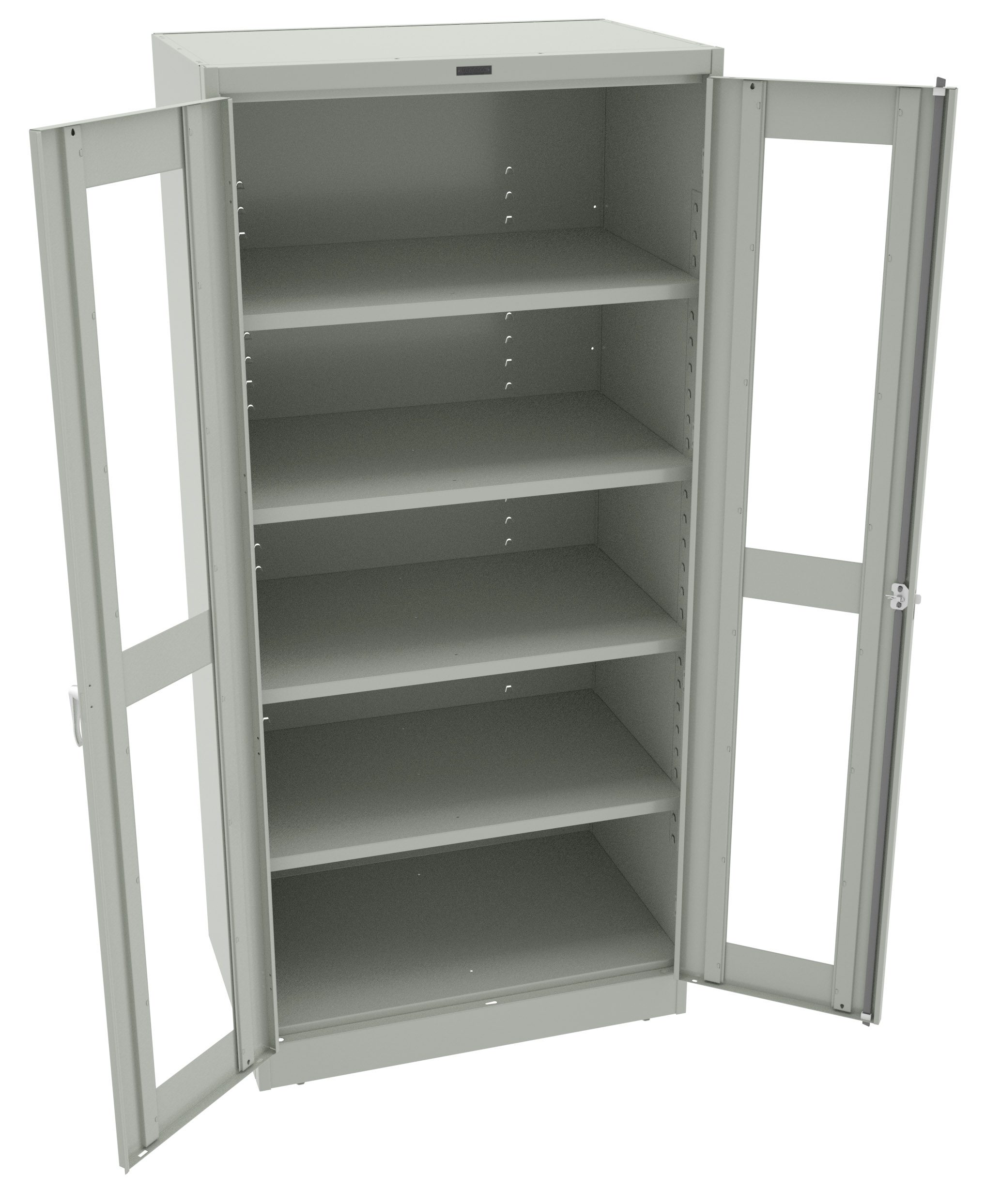 C-Thru doors provide the perfect solution for viewing contents of cabinets while restricting access. 16-gauge fully welded frame and heavy duty construction provides superior sturdiness and increased strength over our standard cabinets. Doors incorporate an extra wide reinforcement that is welded for added strength and stability. Two adjustable levelers compensate for uneven floors. Four-knuckle hinges for added durability. Louvered back panel provides cabinet ventilation. Shelves adjust in 2″ increments without tools. Integrated shelf support tabs secure shelves tightly to cabinet without clips or added parts. Raised base keeps contents out of harm’s way from cleaning liquids.