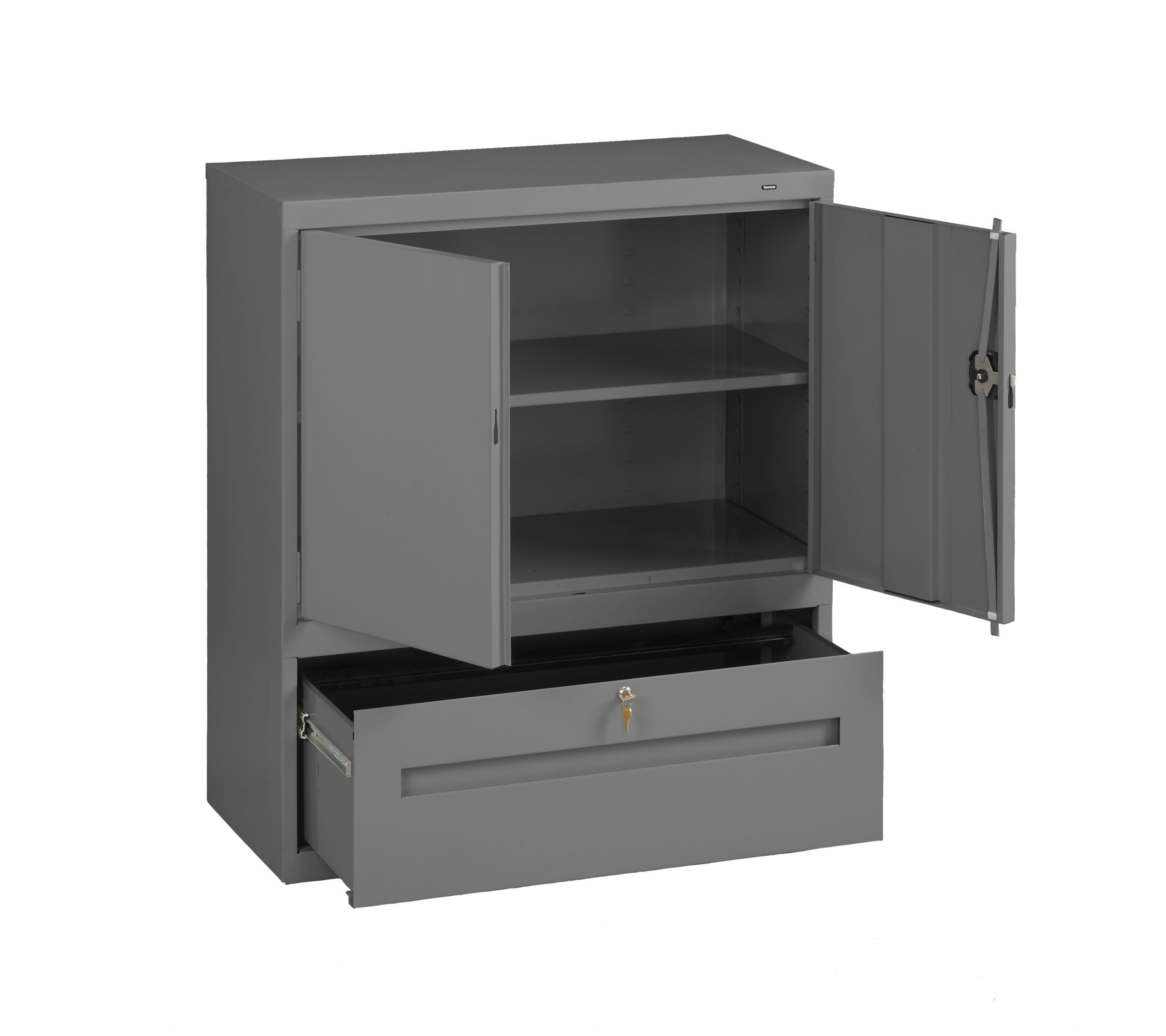 Tennsco 42″ High Storage Cabinet with File Drawer – Assembled, Medium Grey