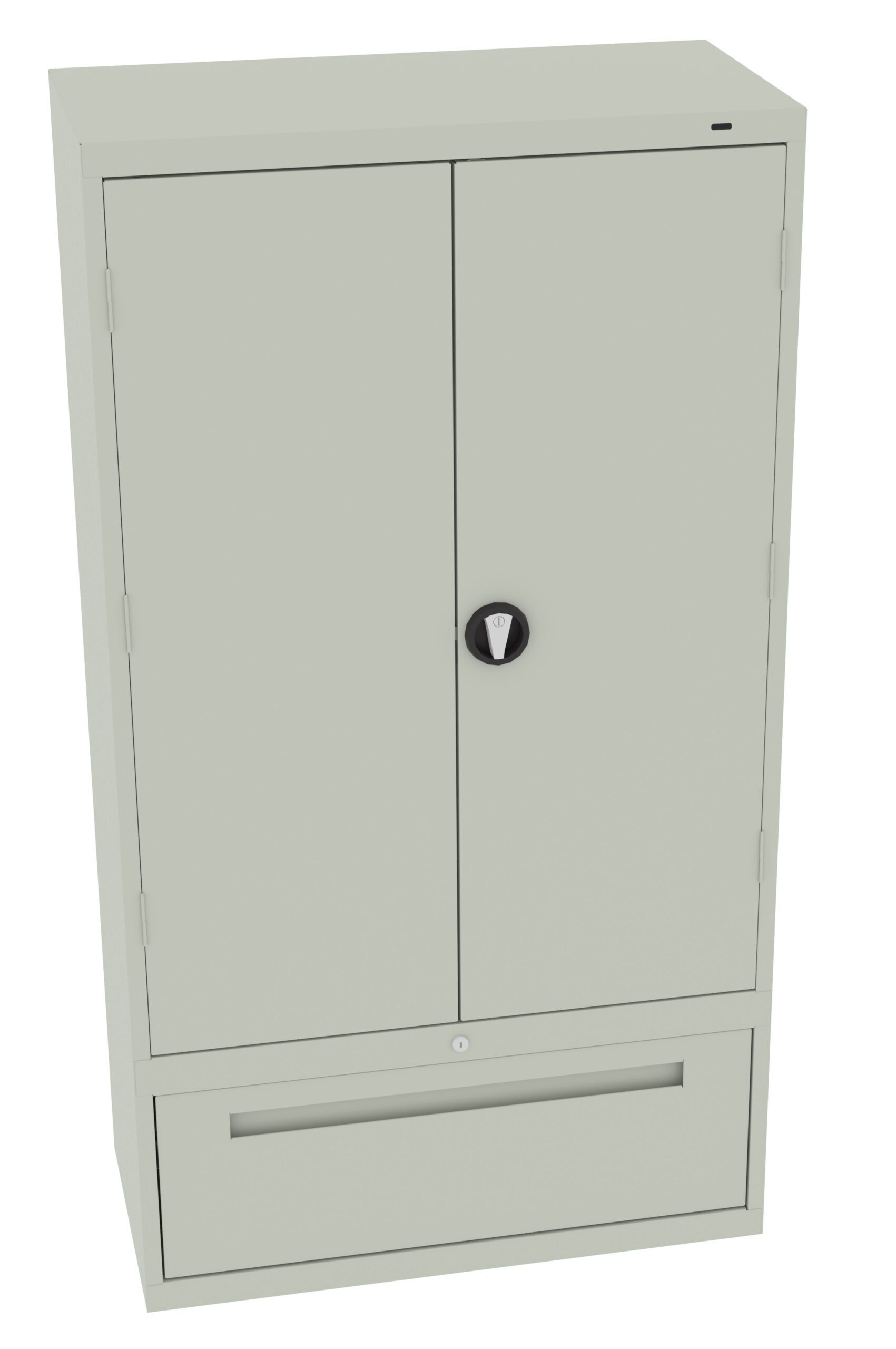 Tennsco 66″ High Storage Cabinet with File Drawer – Assembled, Light Grey