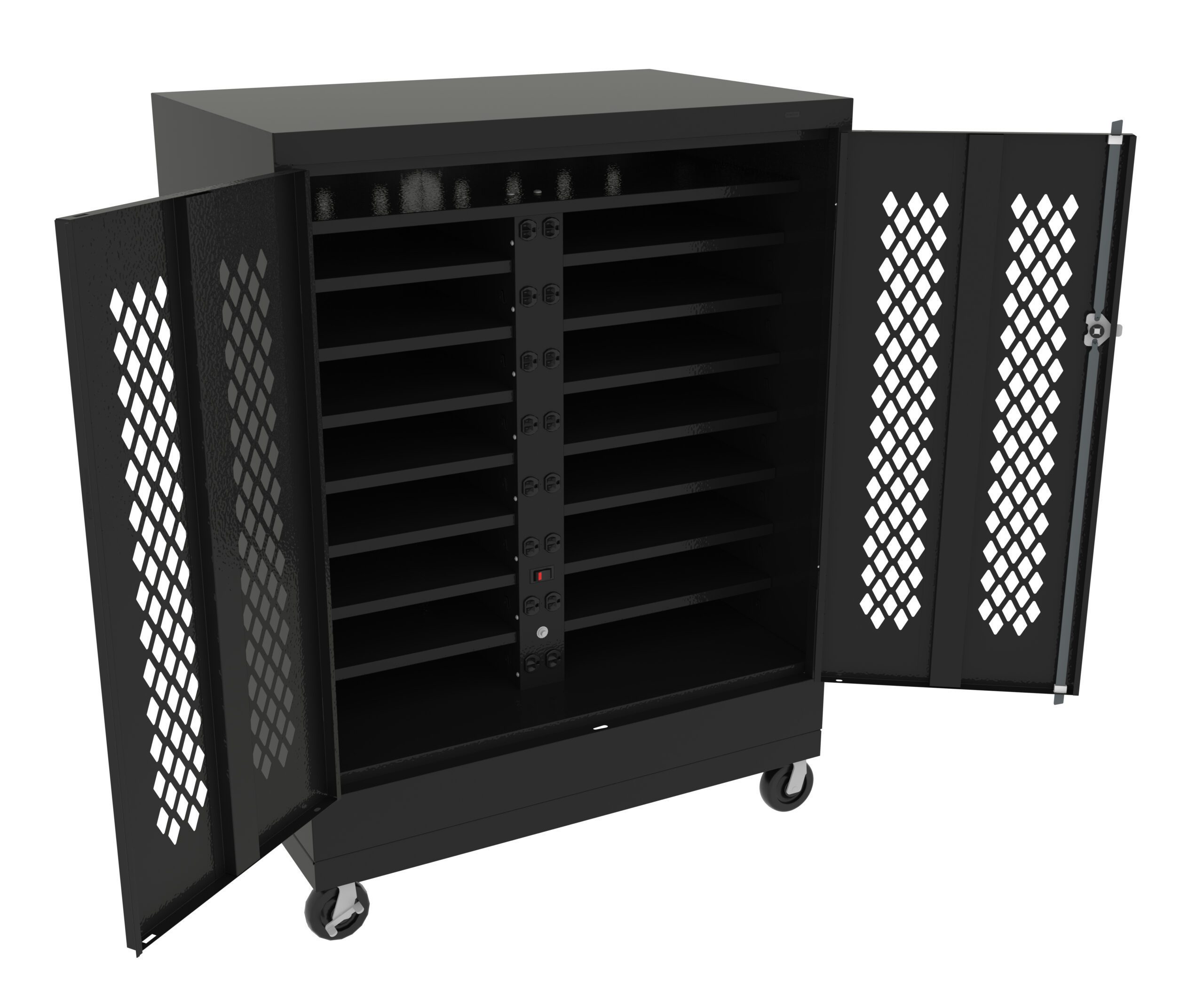 Tennsco 42″ High Laptop Charging Station with Casters – Assembled, Black