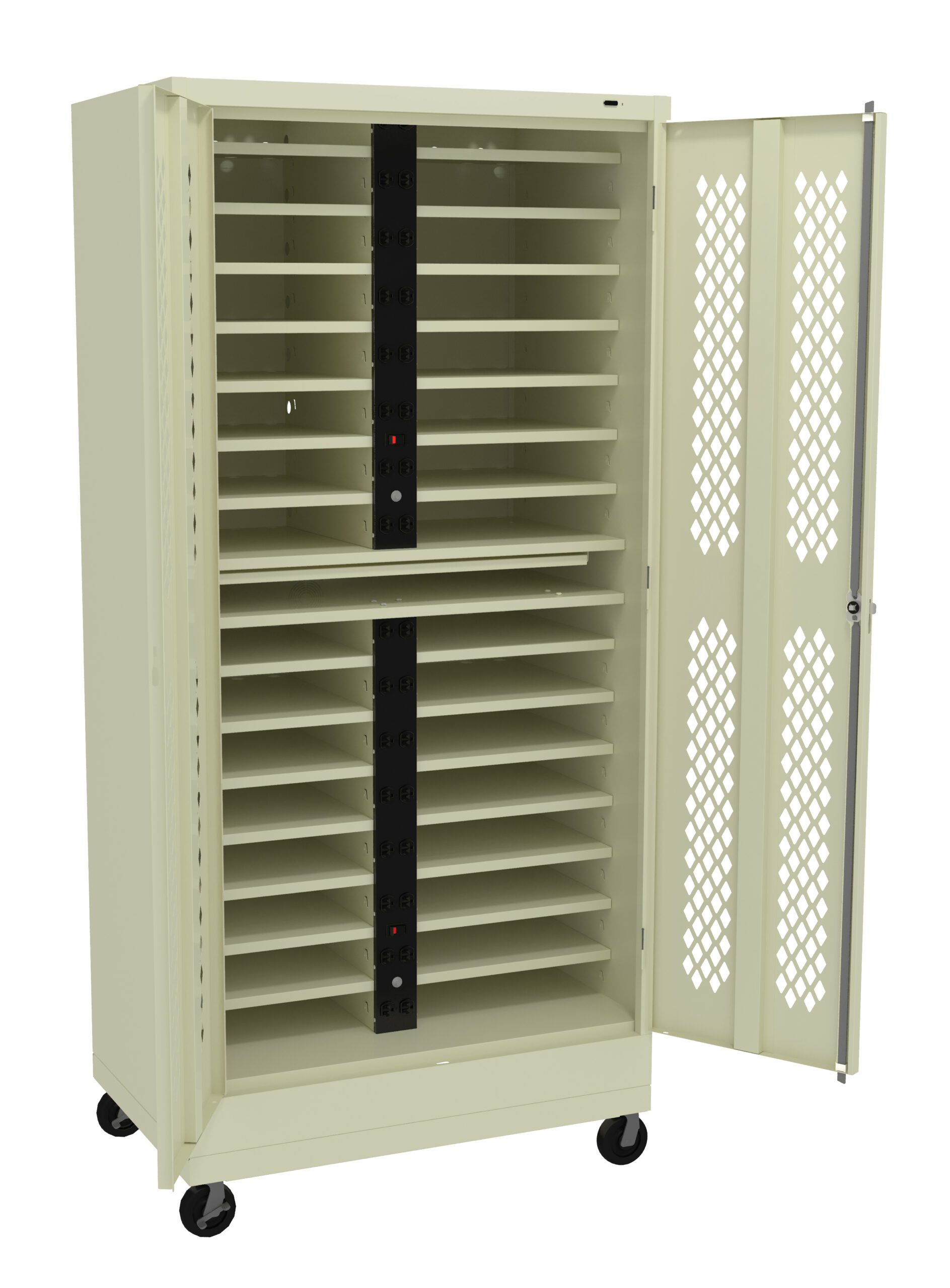 Tennsco 72″ High Laptop Charging Station with Casters – Assembled, Champagne/Putty