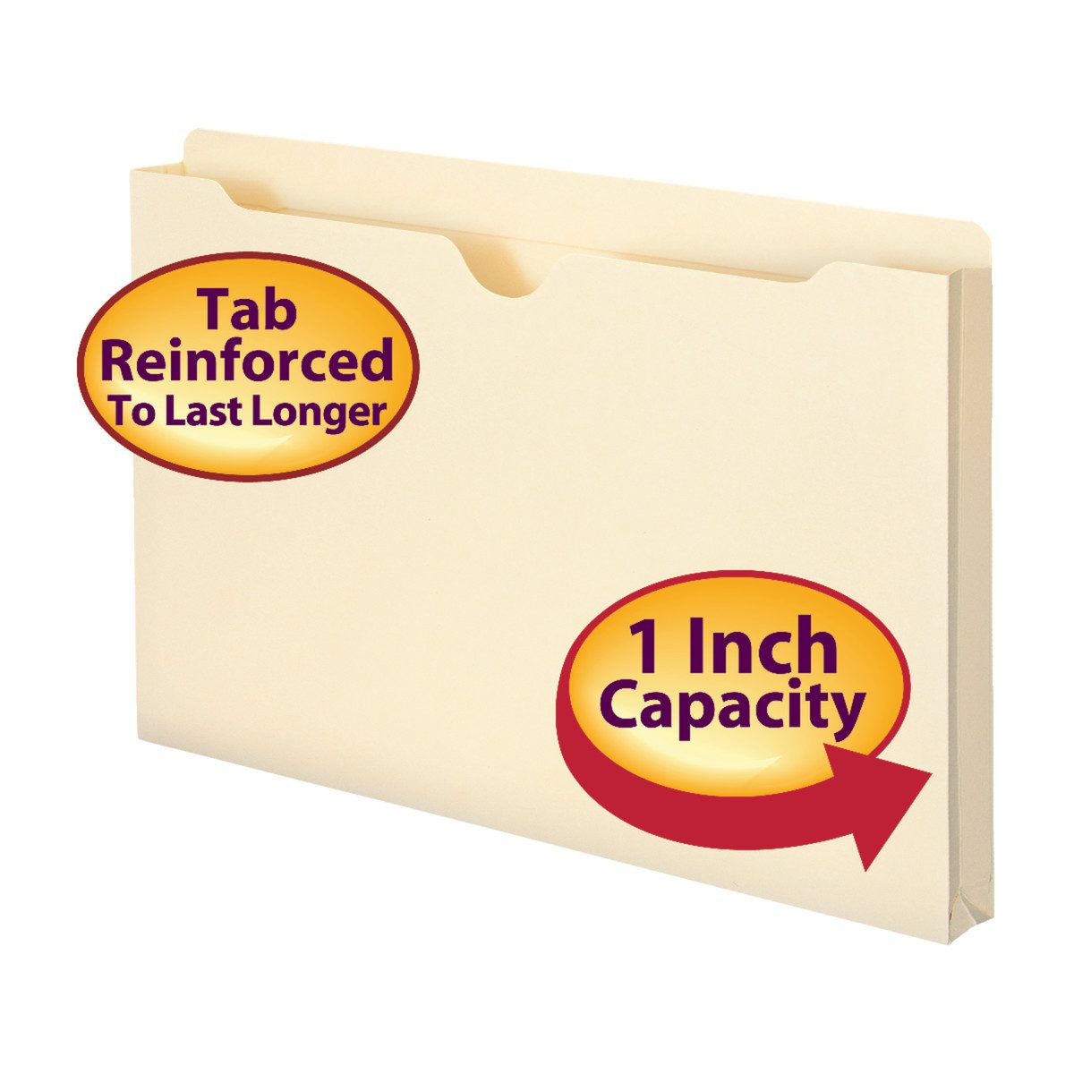 Smead File Jacket, Reinforced Tab, 1″ Expansion, Legal Size, Manila, 50 per Box (76520)
