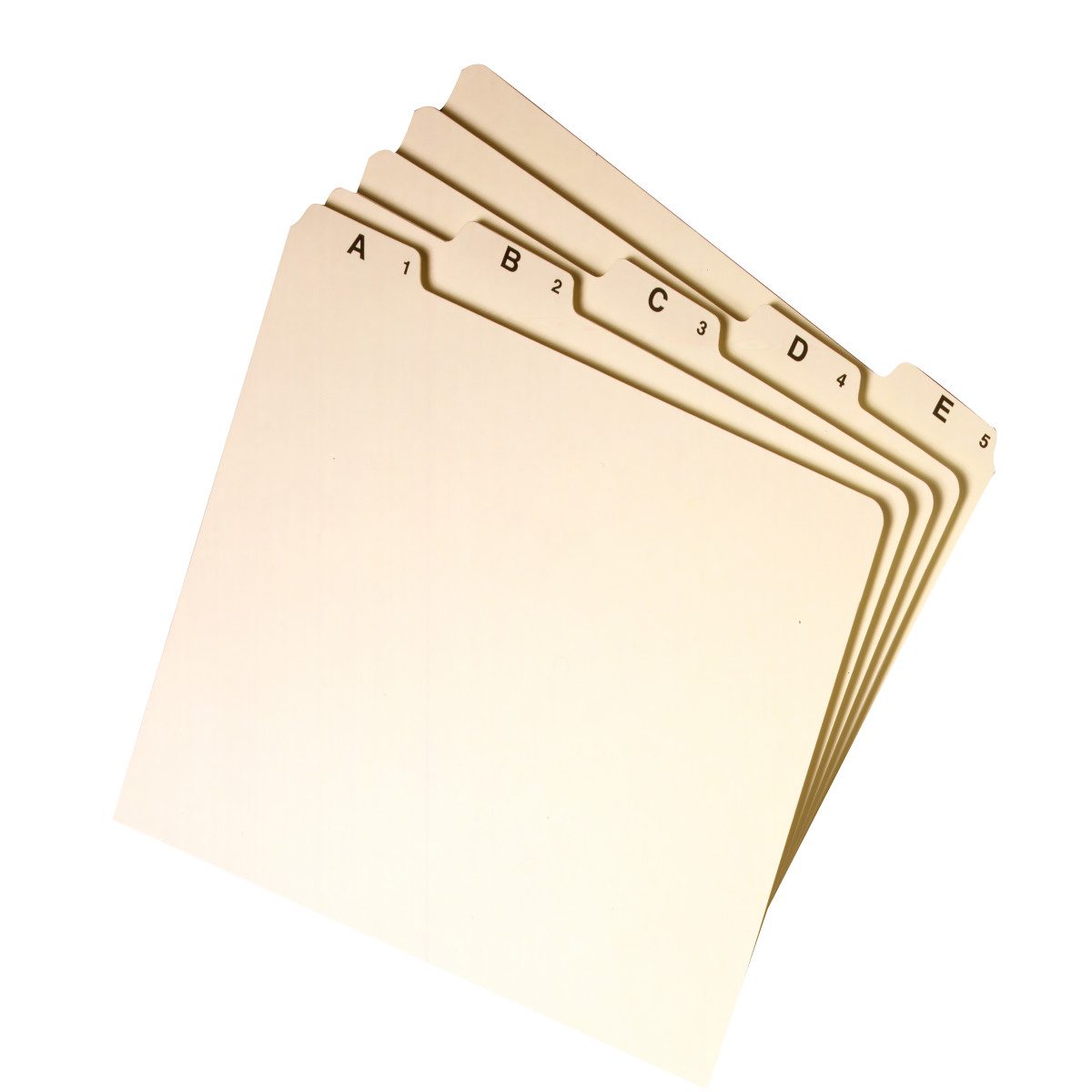 Break your file drawers into easily spotted smaller groups with these alphabetic ?signposts.? Reduce filing time by locating desired area without reading the file labels. Choose economical manila for archives and sturdy pressboard for active files. Flat metal tabs are best for heavy and frequent use.