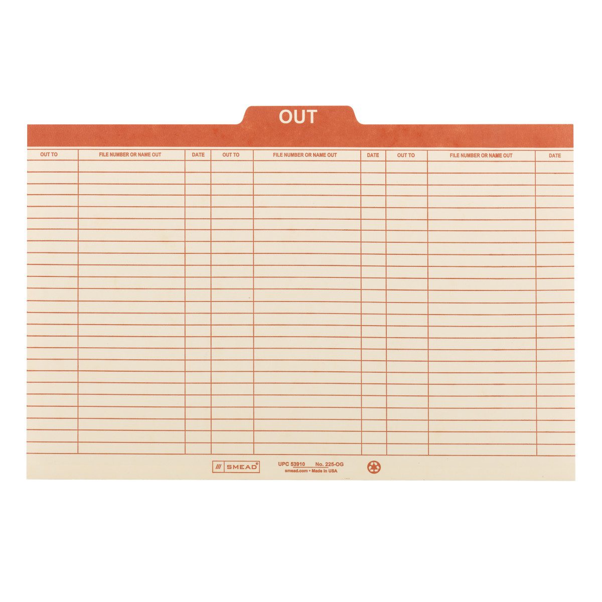 Clearly mark where a folder has been removed from the file by inserting an out guide in its place, putting an end to lost folders. Preprinted charge-out forms on both sides indicate file taken, date taken and by whom. A red tab stands out from surrounding folders for quick location.