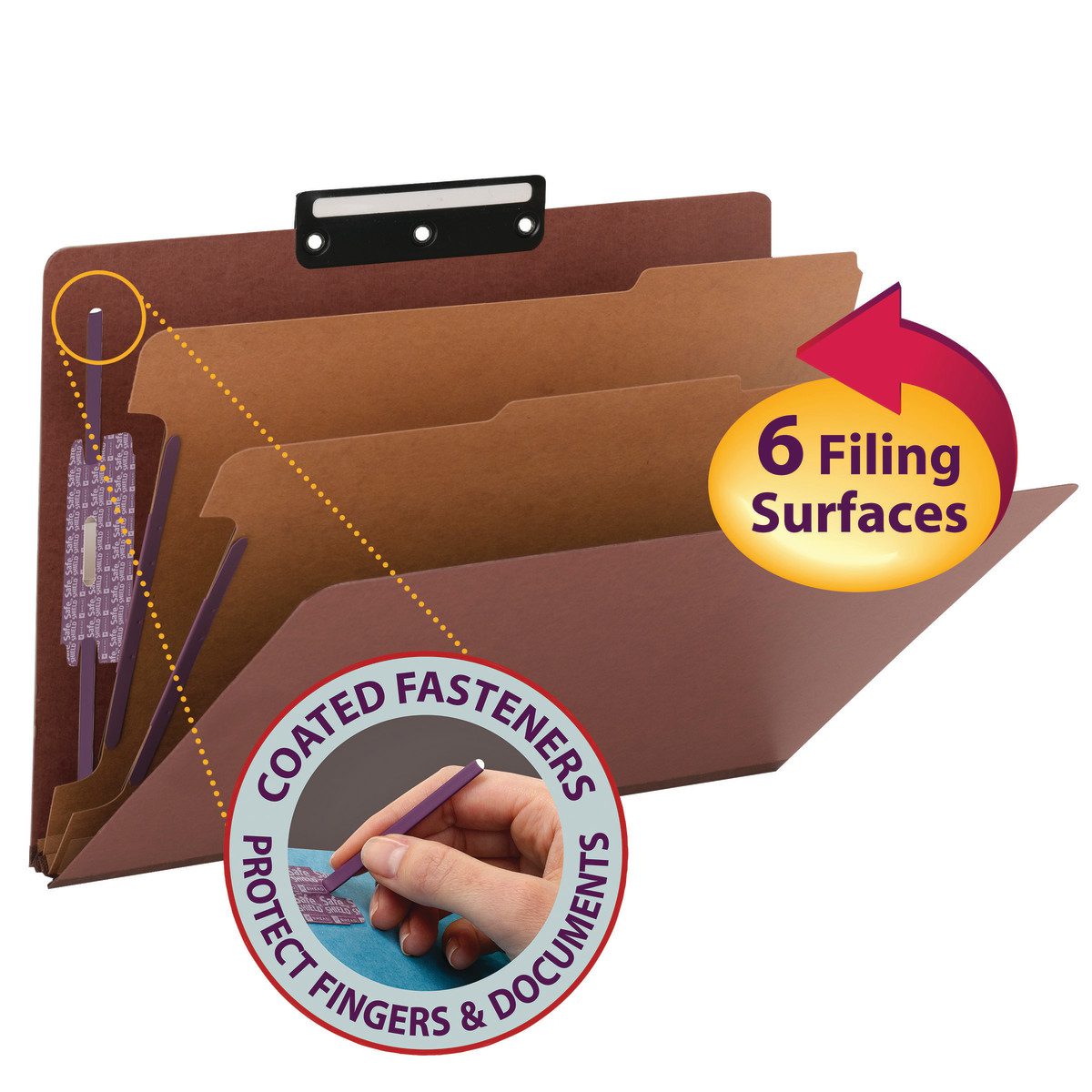 Smead Pressboard Classification File Folder with SafeSHIELD? Fasteners and 1/3-Cut Flat Metal Tab, 2 Dividers, 2″ Expansion, Legal Size, Red, 10 per Box (19230)